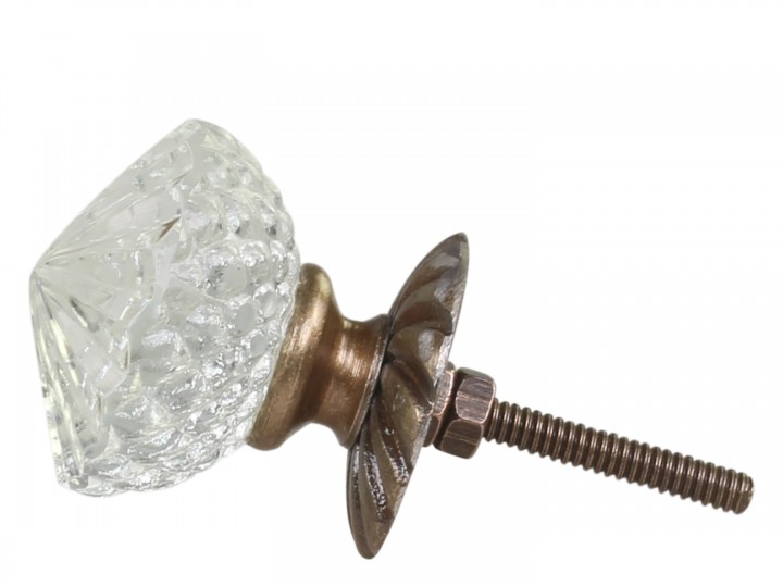 Super flot klar glas knop fra Chic Antique, med krave i bunden. Den fineste glas knob som vil pynte ethvert chatol eller vitrineskab. Du kan sætte dit helt personlige præg, ved at udskifte grebene. Har du renoveret et af din gamle møbler, og malet med kalkmalingen fra Vintage Paint, som vi også forhandler i mange farver, kan du afslutte projektet med at udskifte til disse flotte knopper i glas. Glas knoppen ville passe flot på alle møbler uanset farven. Knopper er lette at skifte ud på de fleste skabe og komoder, så de passer lige præcis til dit møbel.