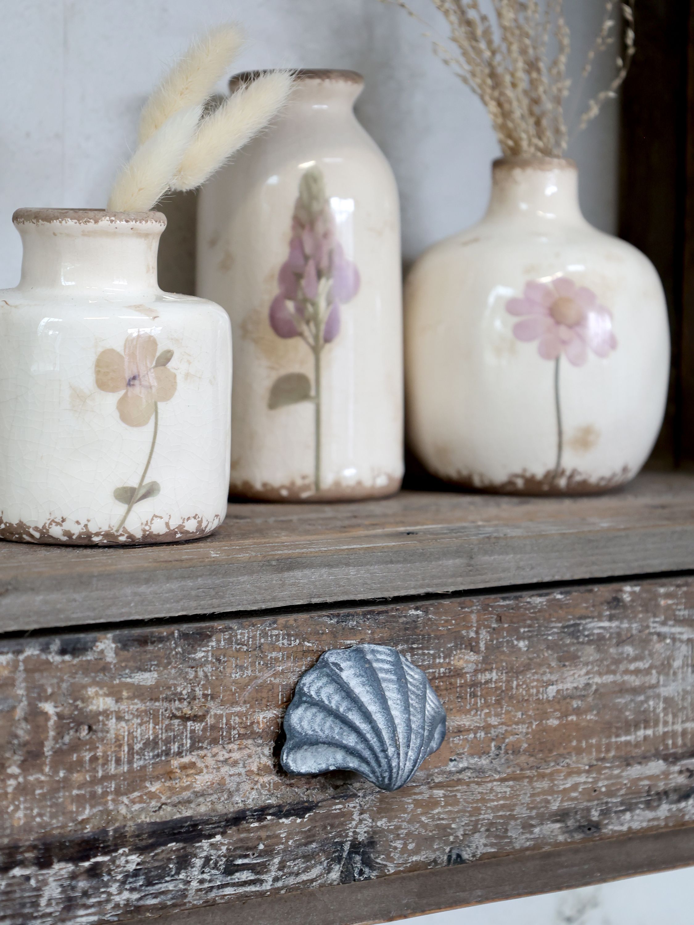 Flot metal greb, formet som en musling, fra Chic Antique i farven grå. Rigtig flot og elegant at udskifte dine gamle greb, med dette greb med et sølv finish. En anden måde at bruge greb på er at sætte flere på et bræt eller på siden af et skab og du har en unik knagerække. Til gennemgående hul, hvor du saver det overskydende af.