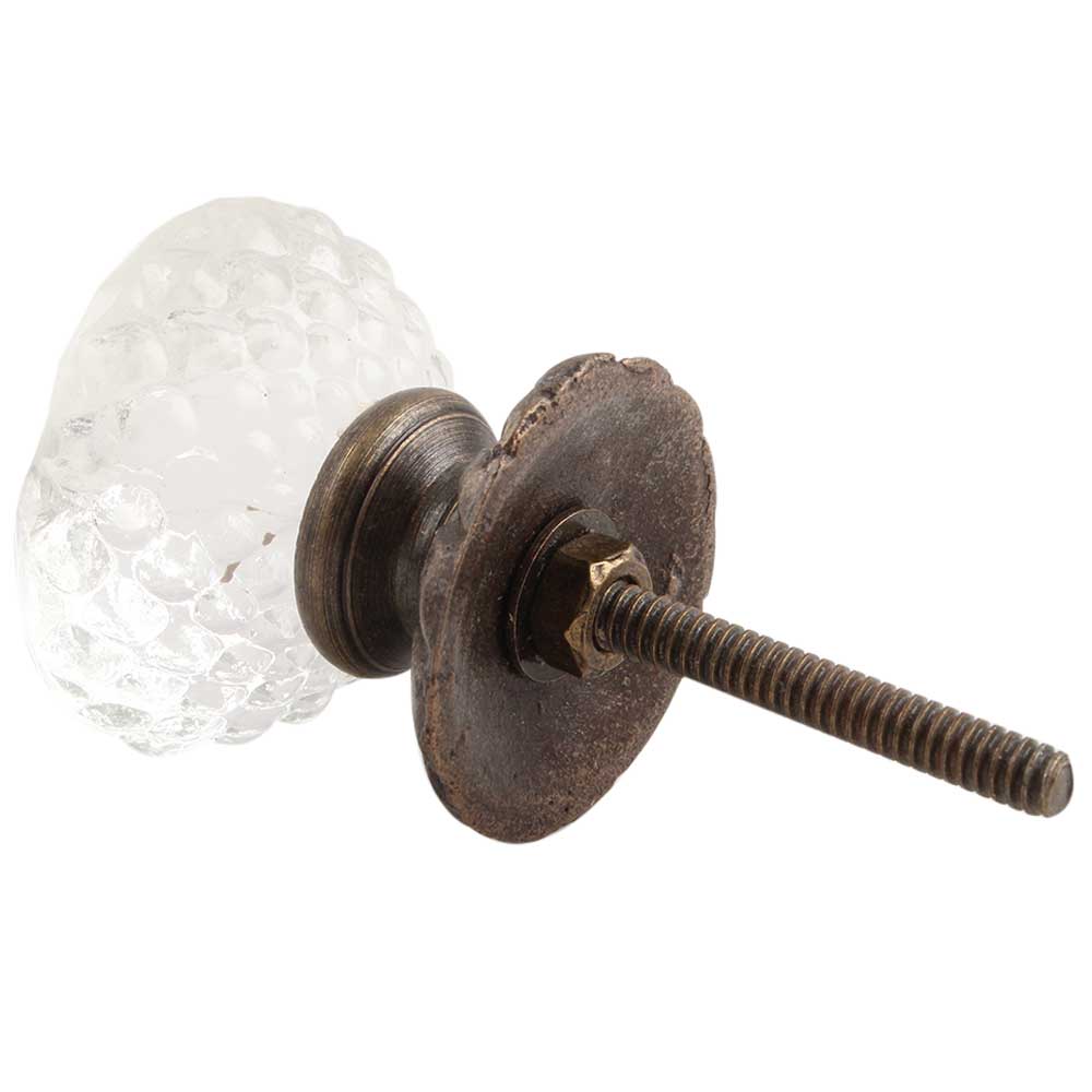 Elegant klar glas knop med dekorativ kant fra La Finesse. Et smukt og klassisk greb, der giver nyt liv til chatoller, vitrineskabe eller andre møbler. Ved at udskifte grebene kan du tilføre dit helt personlige præg. Perfekt til renoverede møbler. Har du malet med vores populære kalkmaling, som fås i mange farver, er disse klare glas knopper den idelle afslutning på projektet. Den neutrale glans gør, at knoppen harmonerer med alle farver og stilarter. Her med antique messing rosset.