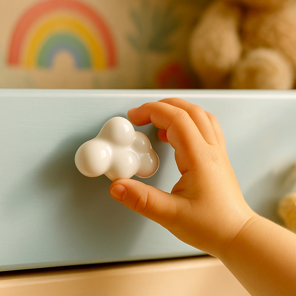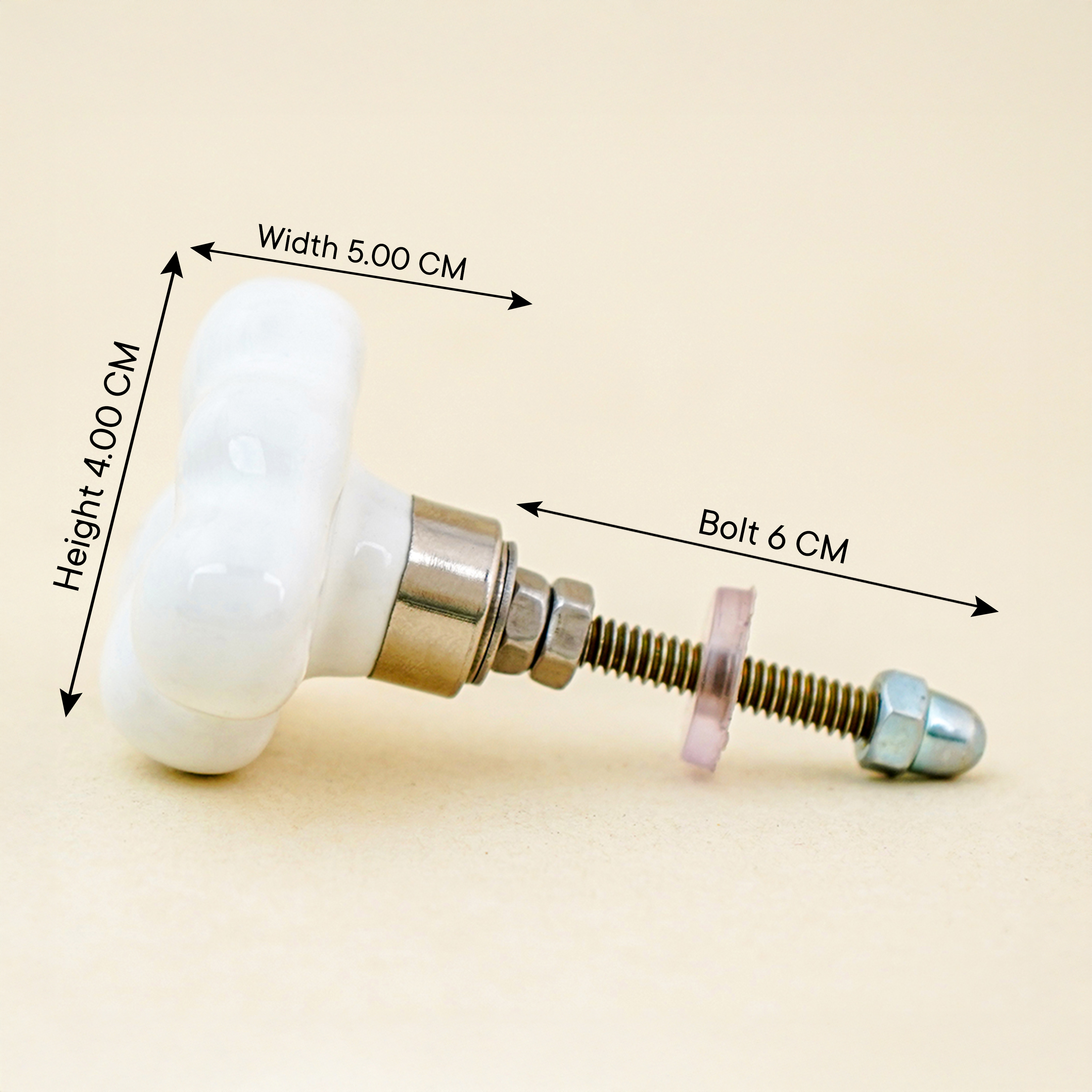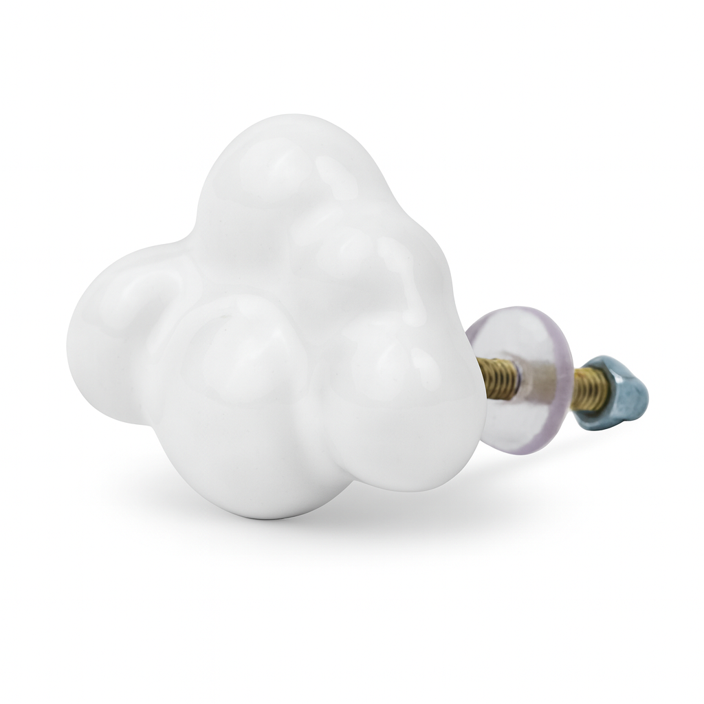Smuk hvid knop formet som en sky. Vores smukke hvide knop til møbler eller skabslåger er prydet med hvide havplanter – en perfekt måde at forny dit hjem på. Du får et helt nyt og flot møbel som passer ind i din stil, eventuelt kan du også male møblet med Kalkmaling, for at fuldende dit projekt. Kedelige skabslåger og skuffer får nemt et nyt liv ved at skifte grebene, og du kan selv vælge hvilket udtryk dit møbel skal have. Denne smukke porcelænsknop er hvid.