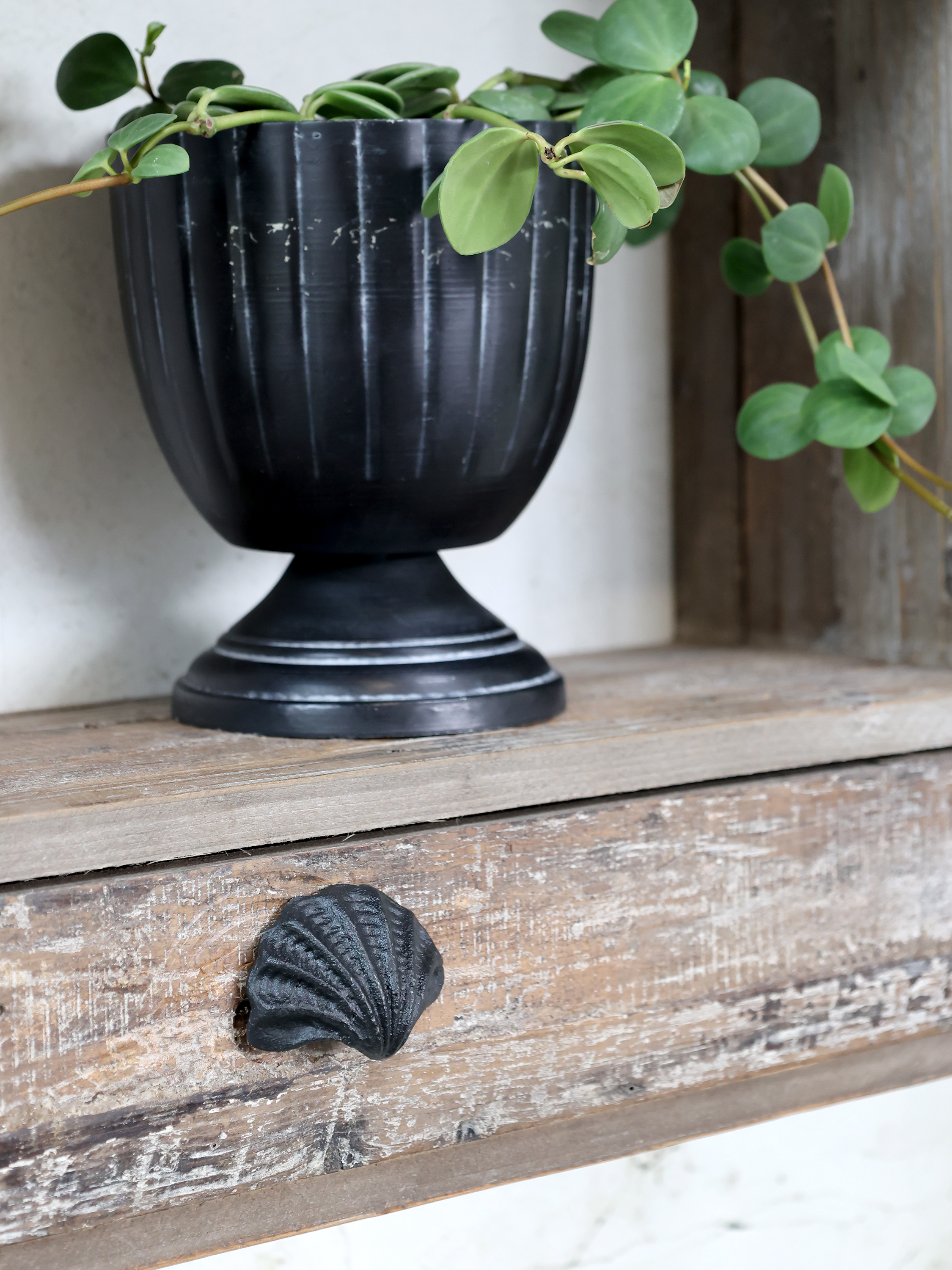 Flot metal greb, formet som en musling, fra Chic Antique i farven antique sort. Rigtig flot og elegant at udskifte dine gamle greb, med dette greb med et sølv finish. En anden måde at bruge greb på er at sætte flere på et bræt eller på siden af et skab og du har en unik knagerække. Til gennemgående hul, hvor du saver det overskydende af.