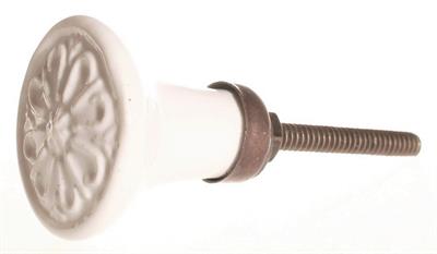 Et rigtigt fint greb i porcelæn fra La Finesse. Det gør underværker at skifte greb ud på et kedeligt møbel, som mangler at blive "frisket op". Du får et helt nyt og flot møbel som passer ind i din stil, eventuelt kan du også male møblet med Kalkmaling, for at fuldende dit projekt. Kedelige skabslåger og skuffer får nemt et nyt liv ved at skifte grebene, og du kan selv vælge hvilket udtryk dit møbel skal have. Denne smukke porcelænsknop er med hvidt mønster.