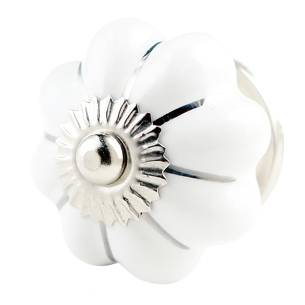Et rigtigt fint greb i porcelæn fra la Finesse. Det gør underværker at skifte greb ud på et kedeligt møbel, som mangler at blive "frisket op". Du får et helt nyt og flot møbel som passer ind i din stil, eventuelt kan du også male møblet med Kalkmaling, for at fuldende dit projekt. Kedelige skabslåger og skuffer får nemt et nyt liv ved at skifte grebene, og du kan selv vælge hvilket udtryk dit møbel skal have. Denne smukke porcelænsknop er hvidt med sølv striber og rosette i sølv.
