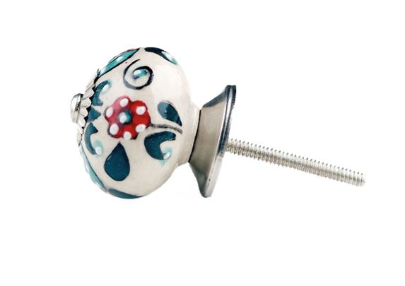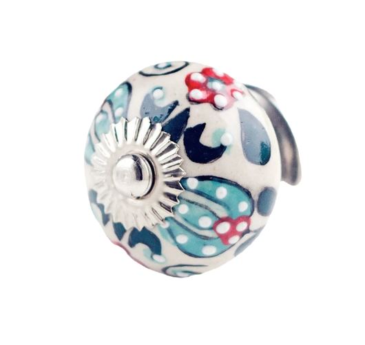 Et rigtigt fint greb i porcelæn fra La Finesse. Det gør underværker at skifte greb ud på et kedeligt møbel, som mangler at blive "frisket op". Du får et helt nyt og flot møbel som passer ind i din stil, eventuelt kan du også male møblet med Kalkmaling, for at fuldende dit projekt. Kedelige skabslåger og skuffer får nemt et nyt liv ved at skifte grebene, og du kan selv vælge hvilket udtryk dit møbel skal have. Denne smukke porcelænsknop er hvid med farverigt mønster.