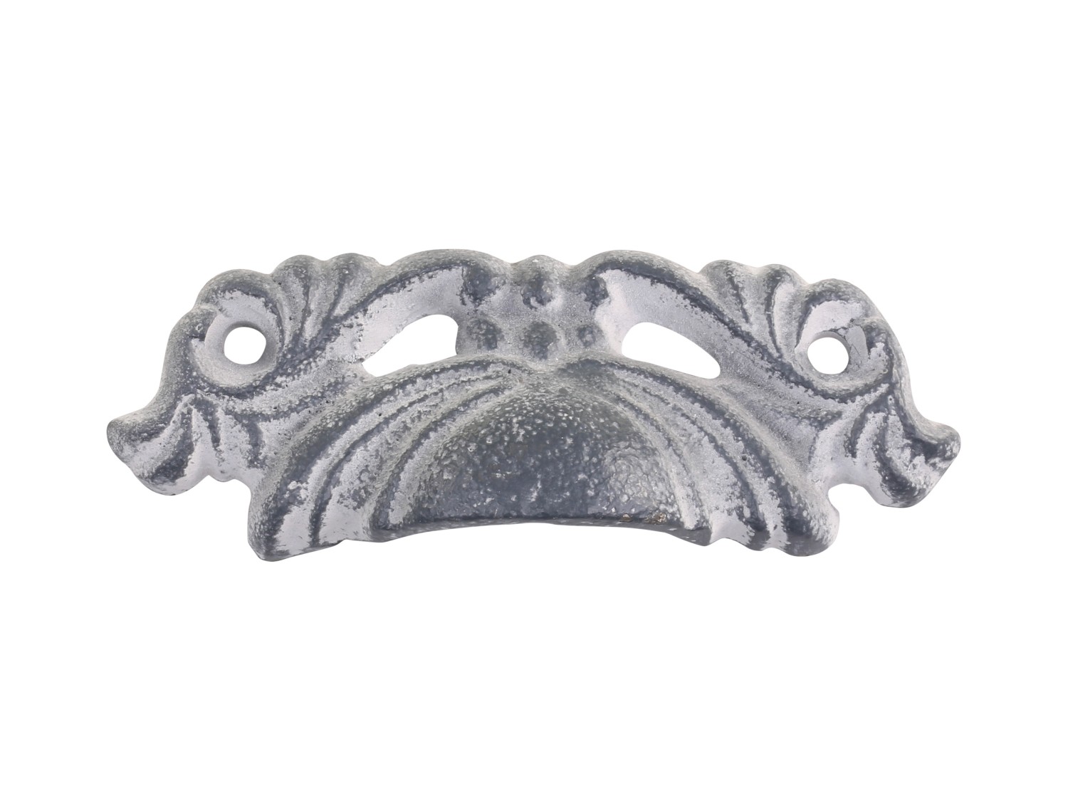 Støbejerns skuffegreb i antik grå med patina fra Chic Antique. Nye greb kan forandre et møbel fuldstændig og så er de lette at monterer. En gammel kommode som er blevet malet med eksempelvis kalkmaling, som vi også forhandler, kan få et fantastisk nyt / gammelt udtryk, og når du så også skifter greb, bliver det helt unikt. Det er også fint at skifte greb på et nyt møbel for at opnå dit helt eget unikke møbel.