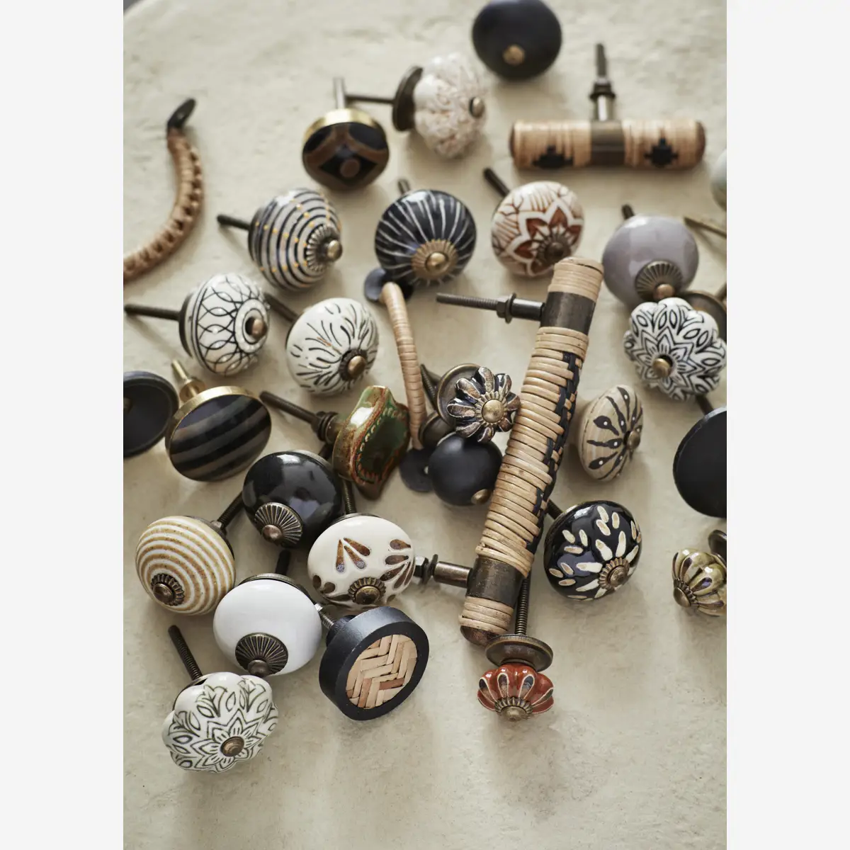 Flotte greb fra Madam Stoltz i farverne hasselnød, grøn og sort med detaljer i antique brass. Grebet sælges enkeltvis af 1 stk. Ønsker du at bestille et antal i en bestemt farve, skriv da venligst farve som en kommentar til os.