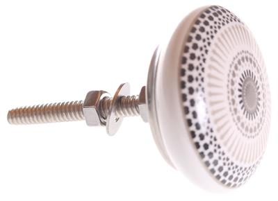 En rigtig flot hvid porcelæns knop med et super flot lysegrå mønster. Knoppen med mønster er fra La Finesse, og super god til et "kedeligt" hvidt møbel, for at få et andet look. Den ville være rigtig fin at bruge på et skab - enten en gammel du har malet, eller en ny hvor du gerne vil udskifte knopperne eller grebene på. Brug den også på dine skabe og skuffer i køkkenet - er til gennemgående hul.