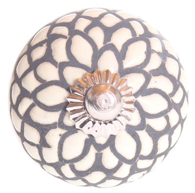 En rigtig flot hvid porcelæns knop med et super flot sort mønster. Knoppen med mønster er fra La Finesse, og super god til et "kedeligt" hvidt møbel, for at få et andet look. Den ville være rigtig fin at bruge på et skab - enten en gammel du har malet, eller en ny hvor du gerne vil udskifte knopperne eller grebene på. Brug den også på dine skabe og skuffer i køkkenet. Er til gennemgående hul.