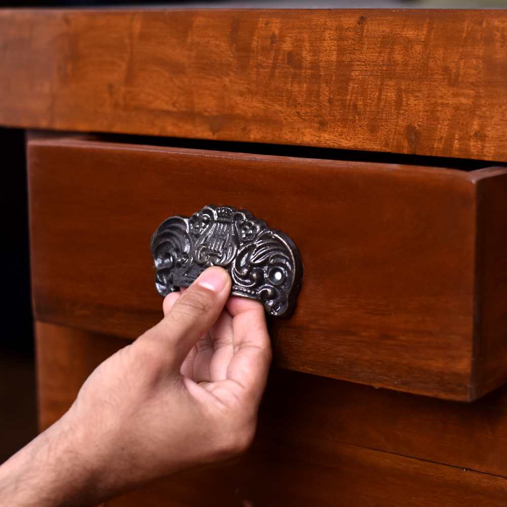 Lundager håndtag i brun jern, med rustikt design, med smukt mønster. Smukt og solidt håndtag i brun jern, udført med et dekorativt mønster, der tilfører et unikt og rustikt udtryk. Håndtaget er ideelt til både nymalede og patinerede kommoder, skabe og låger, hvor den bidrager med varme og personlighed. Med få ændringer kan du forvandle dine eksisterende møbler og give dem et nyt liv – perfekt til dig, der ønsker at bevare det, du holder af, men samtidig tilføje et stilfuldt løft.