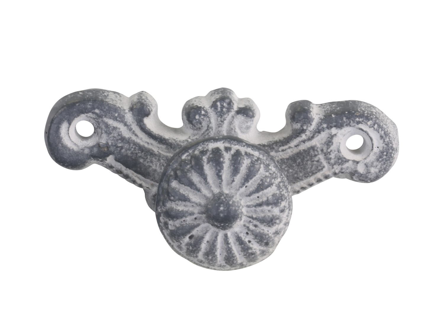 Fra Chic Antique er her en fin nostalgisk greb med dekor i farven antique grå. Nye greb kan forandre et møbel fuldstændig og så er de lette at monterer. En gammel kommode som er blevet malet med eksempelvis kalkmaling, som vi også forhandler, kan få et fantastisk nyt / gammelt udtryk, og når du så også skifter greb, bliver det helt unikt. Det er også fint at skifte greb på et nyt møbel for at opnå dit helt eget unikke møbel.