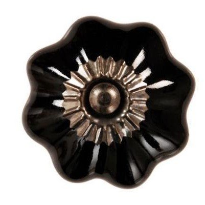 Porcelæns greb i sort fra La Finesse. Det skønne greb er i en blank sort farve og af porcelæn. Knoppen eller grebet er fra La Finesse og er udformet som en blomst med sølvfarvet krave. I bunden er der en stor krans som kan vendes hvilken vej der passer dig bedst. Knopper kan skiftes ud på de fleste skuffer og låger, så de passer lige præcis til dit behov og smag. Det kan gøre selv det grimmeste møbel til 'nyt' igen, med maling og udskiftning af greb. Prøv også at sætte en fire - fem smukke greb på et stykke strandvasket bræt og du har en helt unik knagerække til dit sommerhus eller andre rum. Nnoppen er til gennemgående skrue og med sølvfarvet krave.