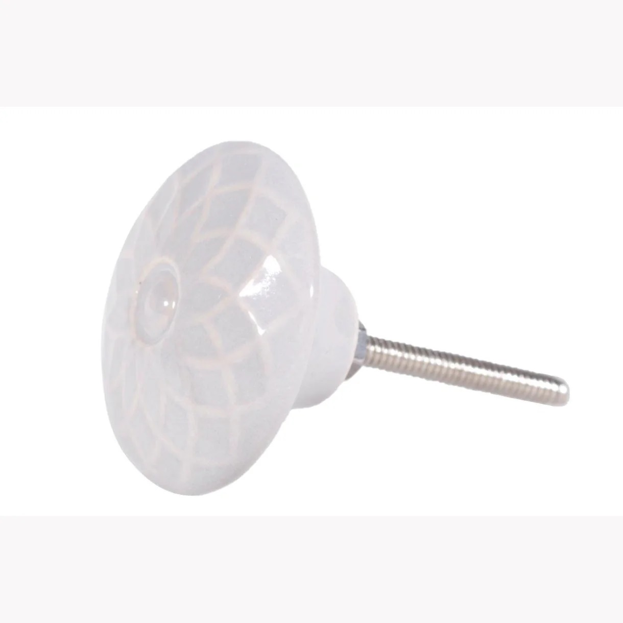 La Finesse har de skønneste greb og knopper, denne er lavet i keramik og har et flot mønster på fronten. Denne knop kan ændre ethvert møbel uden de store forberedelser. Fjern blot dine gamle greb fra dit møbel, og udskift med disse flotte knopper som vil pynte i ethvervt hjem. Har du et flot gammelt møbel som mangler nogle enkelte og ikke alt for farverige knopper, så er denne grå knop helt perfekt.