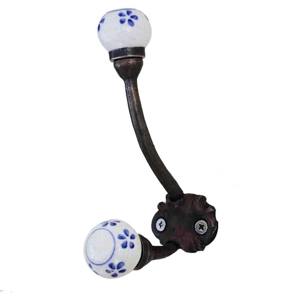 Lundager Dobbelt Knage I Jern Med Porcelæns Knop, Blå Mønster