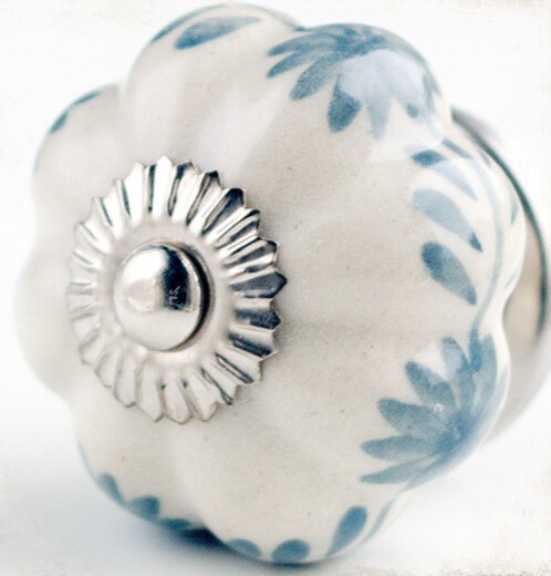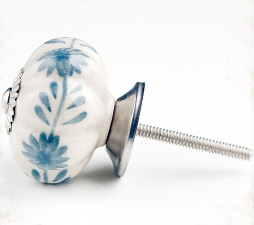 Et rigtigt fint greb i porcelæn med smukke gråblå planter . Det gør underværker at skifte greb ud på et kedeligt møbel, som mangler at blive "frisket op". Du får et helt nyt og flot møbel som passer ind i din stil, eventuelt kan du også male møblet med Kalkmaling, for at fuldende dit projekt. Kedelige skabslåger og skuffer får nemt et nyt liv ved at skifte grebene, og du kan selv vælge hvilket udtryk dit møbel skal have. Denne smukke porcelænsknop er hvid med gråblå plante mønster.