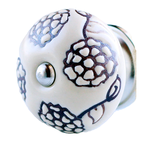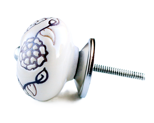 Et rigtigt fint greb i porcelæn fra la Finesse. Det gør underværker at skifte greb ud på et kedeligt møbel, som mangler at blive "frisket op". Du får et helt nyt og flot møbel som passer ind i din stil, eventuelt kan du også male møblet med Kalkmaling, for at fuldende dit projekt. Kedelige skabslåger og skuffer får nemt et nyt liv ved at skifte grebene, og du kan selv vælge hvilket udtryk dit møbel skal have. Denne smukke porcelænsknop er cremefarvet med store brun blomster.