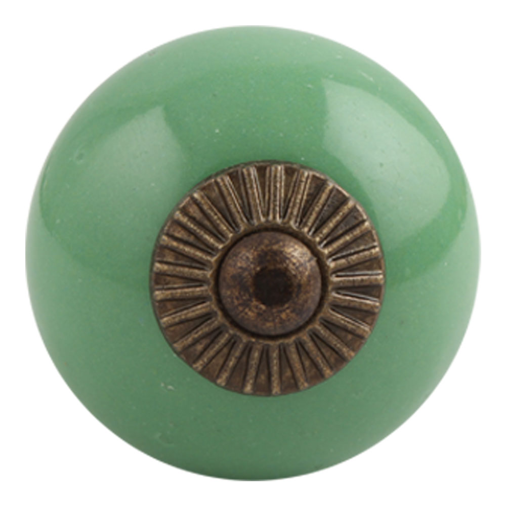 Skøn keramik greb i en flot grøn farve, samt rosette i antique brass. Brug denne knop til udskiftning af greb i køkkenet eller badeværelset, og ved renovering af et gammelt skab, kommode eller lignende. Kraven i bunden kan vendes som det nu passer 'øjet' bedst. Se vores store udvalg af knopper her på webshoppen. Til gennemgående hul, hvor du blot saver det overskydende gevind af.