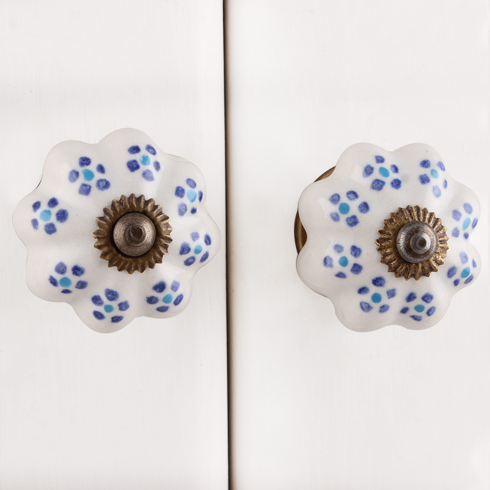 Opgrader dine møbler uden at sprænge budgettet. Disse hvide porcelænsgreb med små blå blomster er perfekte til upcycling og gør det nemt at forvandle dine møbler fra yt til nyt, med et enkelt grebsskift. Porcelænsgreb er en af de mest effektive og prisvenlige måder at give køkkenlåger, skabe og kommoder et nyt look. De tilfører både charme, farve og personlighed – ideelt til dig, der ønsker en hurtig og billig makeover af hjemmet. Vælg disse dekorative møbelgreb, hvis du vil kombinere kvalitet, æstetik og en budgetvenlig løsning, der giver dine møbler nyt liv.