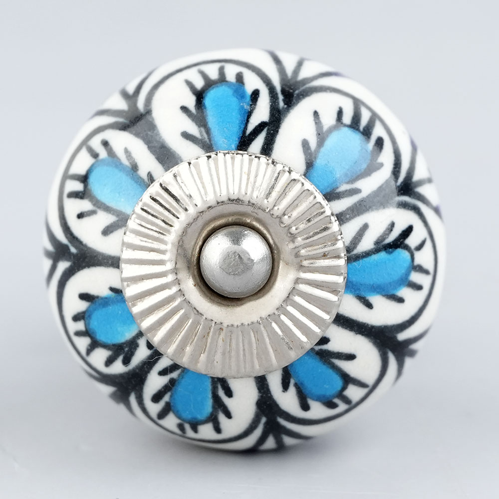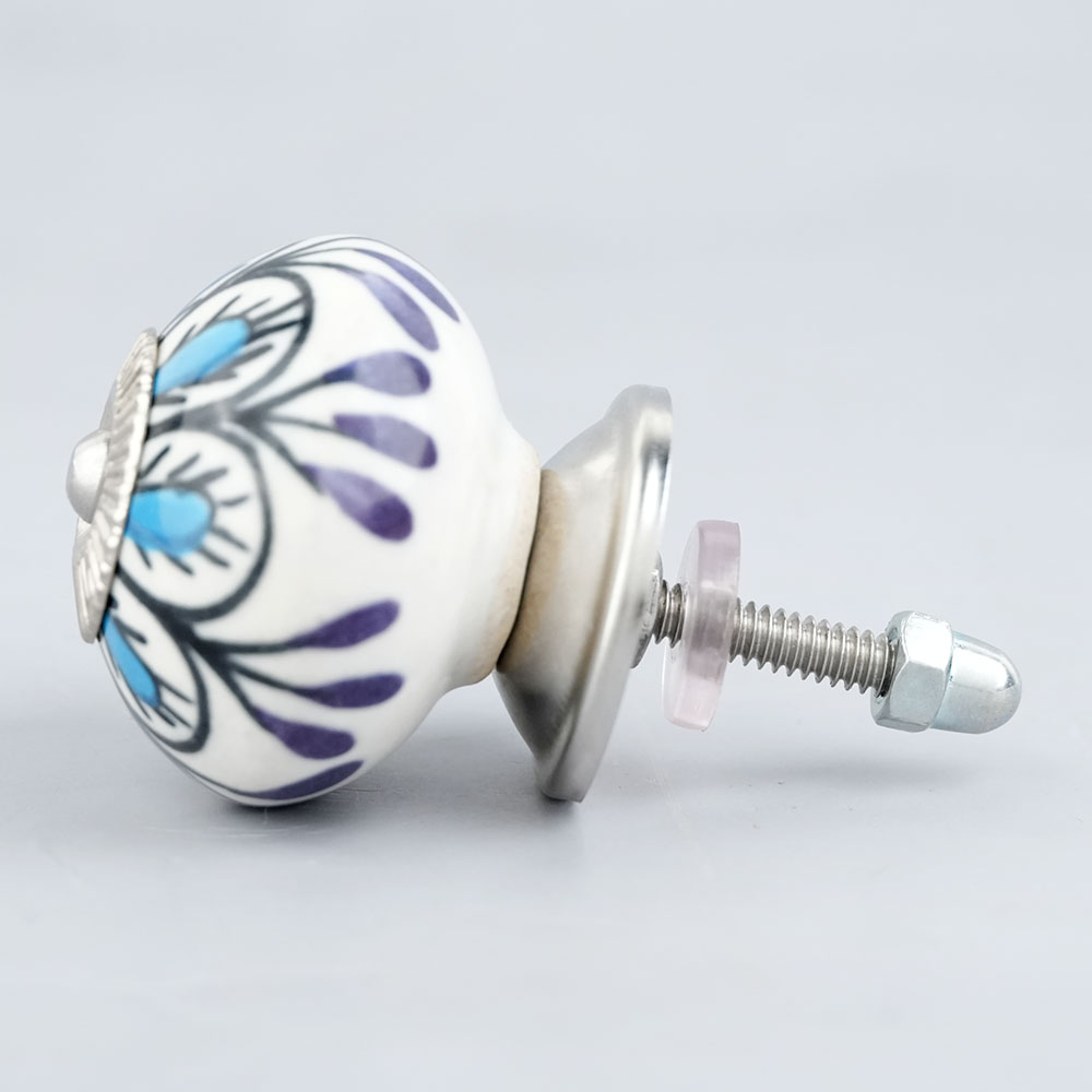 Et rigtigt fint greb i porcelæn med et smukt mønster i sort, blå og lilla. Det gør underværker at skifte greb ud på et kedeligt møbel, som mangler at blive "frisket op". Du får et helt nyt og flot møbel som passer ind i din stil, eventuelt kan du også male møblet med Kalkmaling, for at fuldende dit projekt. Kedelige skabslåger og skuffer får nemt et nyt liv ved at skifte grebene, og du kan selv vælge hvilket udtryk dit møbel skal have. Dette porcelænsgreb er super smuk og kan hurtigt give nyt liv til et kedeligt møbel.