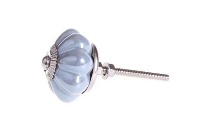 Det fineste greb i en skøn grå perlemore. Knoppen eller grebet er fra La Finesse og er udformet som en blomst, der er gennemgående skrue med sølvfarvet krave. I bunden er der en stor krans som kan vendes hvilken vej der passer dig bedst. Knopper kan skiftes ud på de fleste låger og skuffer, så de passer lige præcis til din indretning. Prøv også at sætte tre eller fire smukke greb på en strandvasket bræt og du har en helt unik knagerække til dit køkken eller andre rum.