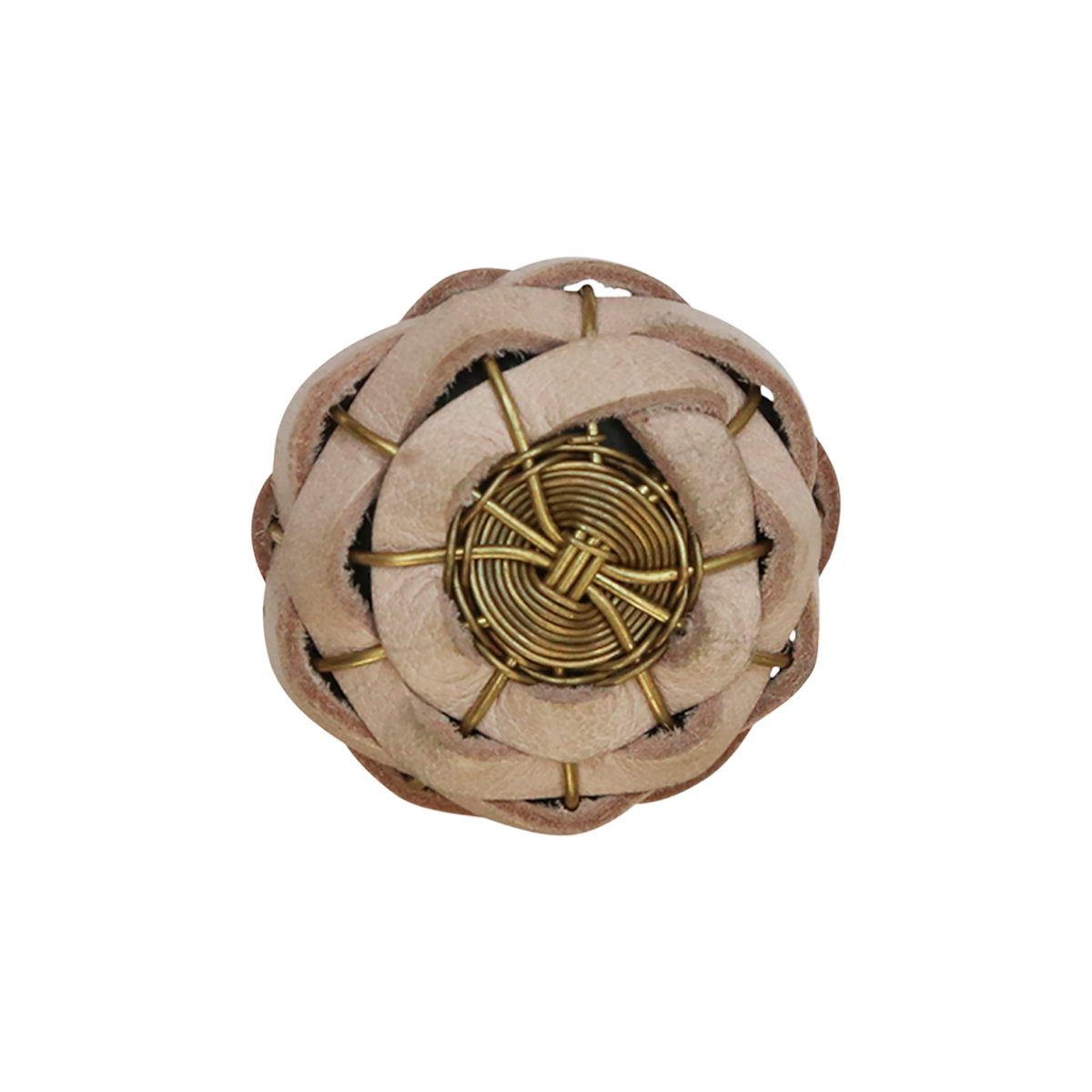 Flot rund læder greb fra Chic Antique, med messing mønster. Rigtig flot og elegant at udskifte dine gamle greb med eksklusive runde læder greb. En anden måde at bruge greb på er at sætte flere på et bræt eller på siden af et skab og du har en unik knagerække. Til gennemgående hul, hvor du saver det overskydende af.