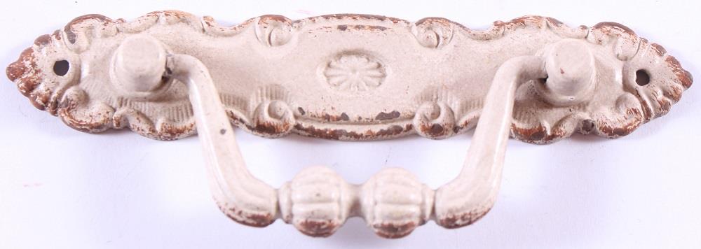 Utrolig smukt detaljeret greb i en klassisk creme farve med patina. Udskift dine gamle greb med dette super flotte vintage metalgreb, måske på den gamle kommode eller anden møbel, det vil se rigtig fint ud med dette skuffegreb.
