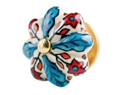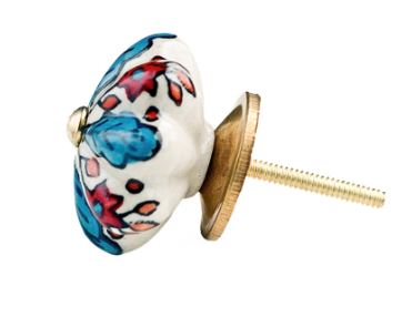 Et rigtigt fint greb i porcelæn fra la Finesse. Det gør underværker at skifte greb ud på et kedeligt møbel, som mangler at blive "frisket op". Du får et helt nyt og flot møbel som passer ind i din stil, eventuelt kan du også male møblet med Kalkmaling, for at fuldende dit projekt. Kedelige skabslåger og skuffer får nemt et nyt liv ved at skifte grebene, og du kan selv vælge hvilket udtryk dit møbel skal have. Denne smukke porcelænsknop er hvid med blåt blad og røde blomster.