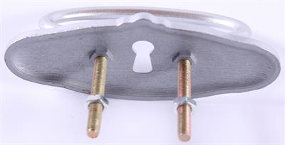 Skrues fast med 2 skruer på bagsiden - de er ca. 3,8 cm lange.