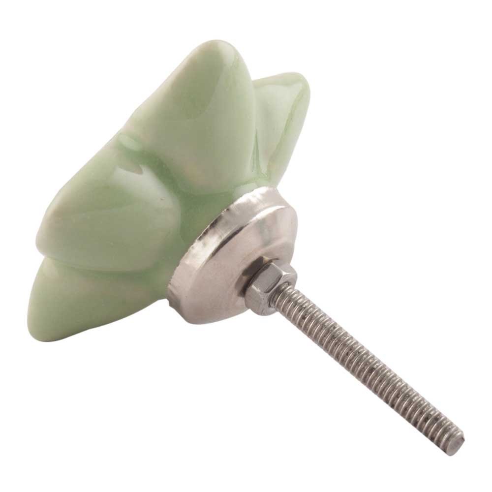Smuk ærtegrøn knop. Vores smukke knop til møbler eller skabslåger er prydet med et flor mønster. En perfekt måde at forny dit hjem på. Du får et helt nyt og flot møbel som passer ind i din stil, eventuelt kan du også male møblet med Kalkmaling, for at fuldende dit projekt. Kedelige skabslåger og skuffer får nemt et nyt liv ved at skifte grebene, og du kan selv vælge hvilket udtryk dit møbel skal have. Denne smukke porcelænsknop er ærtegrøn og formet som en blomst.