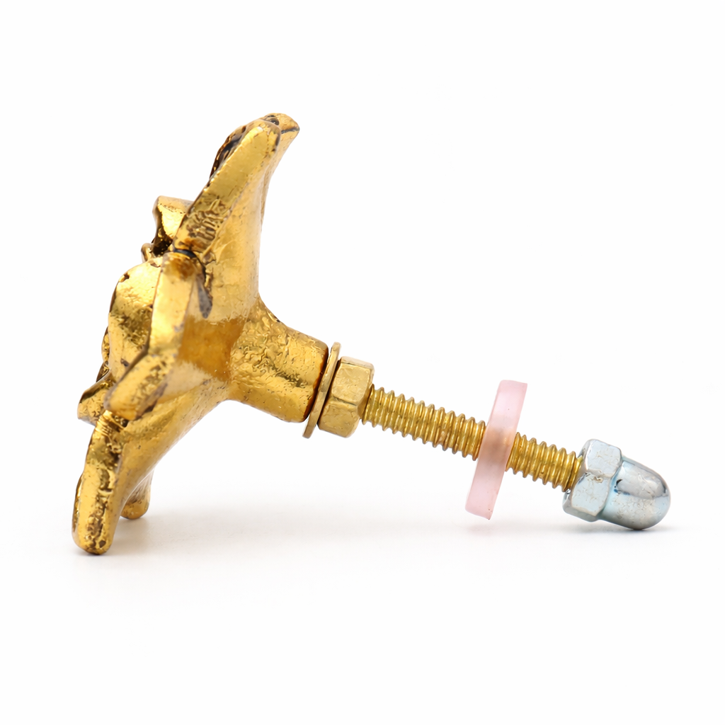 Smuk guld farvet knop, formet som en rose. Perfekt til at forny dit hjems indretning. Dette nye møbeltilbehør tilføjer en hyggelig og stilfuld detalje til skuffer og skabe. Skab et frisk look med dette smukke greb, der nemt kan integreres i enhver indretning. Flotte greb er en af de nemmeste måder at give dine møbler eller køkkenlåger et helt nyt udtryk. Uanset om du ønsker et romantisk, klassisk, minimalistisk eller farverigt look, findes der greb, der passer perfekt til din stil. Med de rette greb bliver selv det mest almindelige møbel til noget helt særligt.