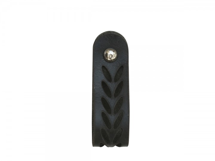 Et rigtig flot greb i sort læder med hulmønster fra Chic Antique. Greb til dine skabslåger eller skuffer som trænger til lidt forandring. Grebene er lavet i lækkert sort læder, som kun bliver flottere med tiden. Grebet er til gennemgående hul, hvor skruen let skæres til i den ønskede længde. Brug en lille nedstryger til det. Chic Antique laver disse greb i to farver - i Brun og som her i sort. Møtrik og spændeskive medfølger.