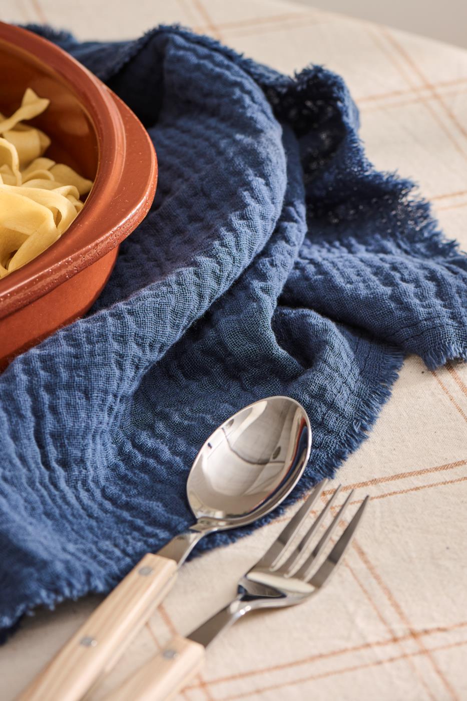 Indigo farvet stofserviet fra Ib Laursen. Brug disse servietter til frokost på terrassen, i sommerhuset når venner og familie kommer på besøg. Den blålige serviet er perfekt til hygge og godt mad.