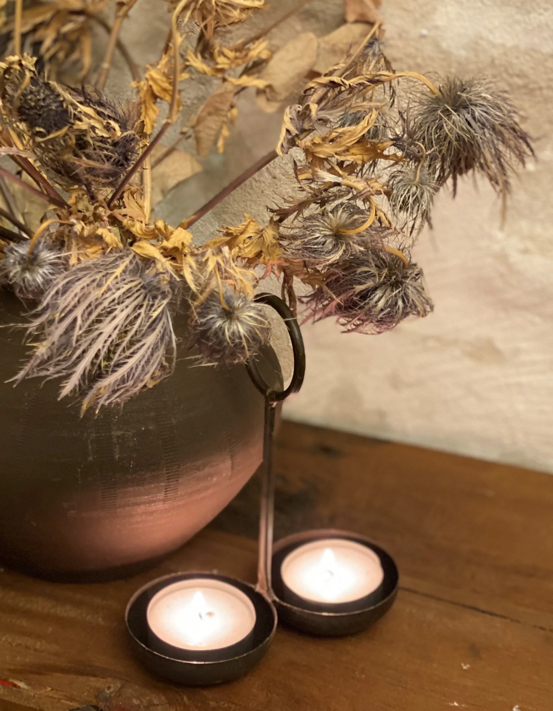 Denne hyggelige lysholder i sort jern til 2 fyrfadslys, er fra Sjælsø Nordic.