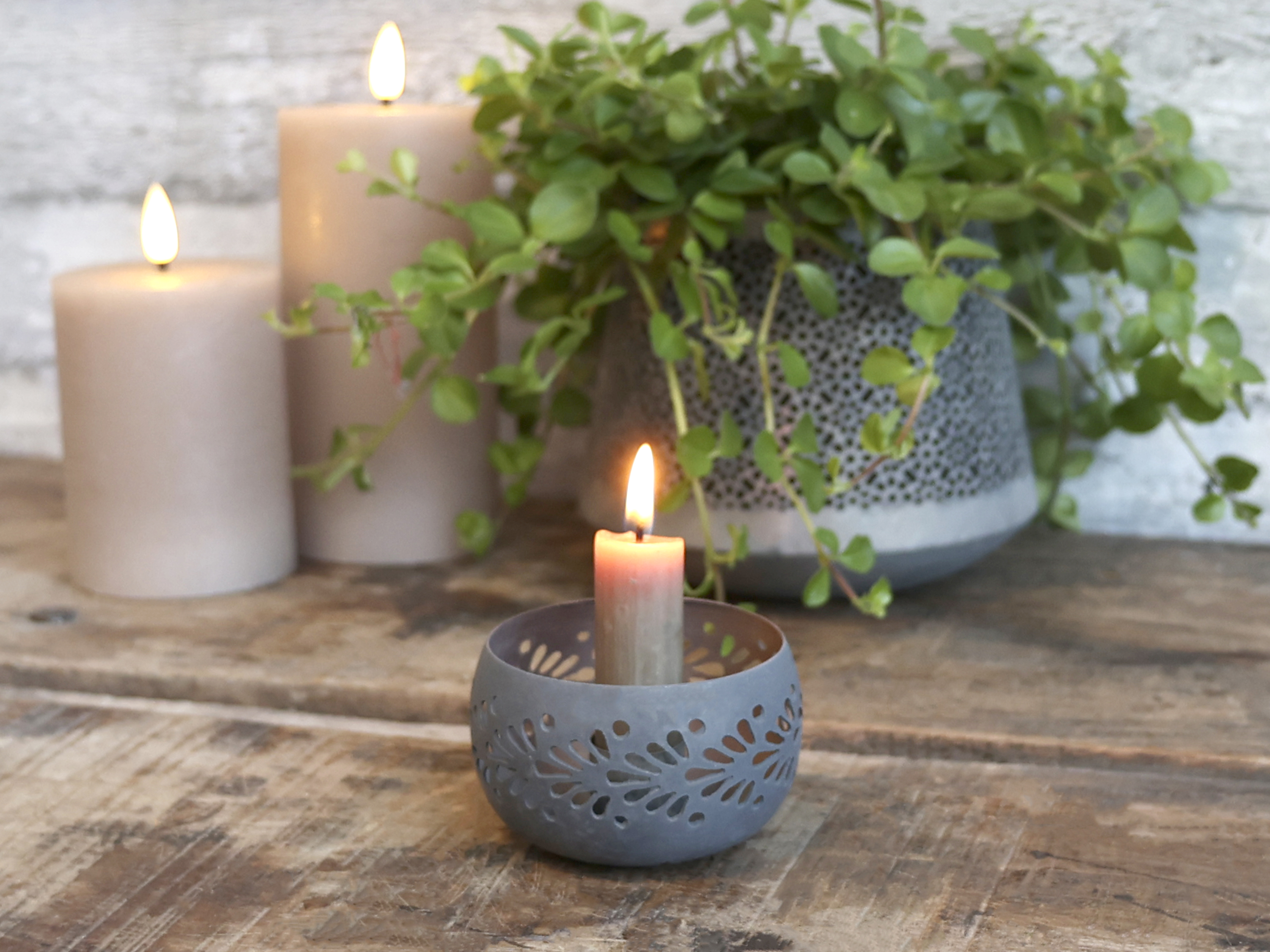 Lille romantiske lysestage i farven antique zink fra Chic Antique. Lysestagen er til bedeslys, og er super gode til at bruge når du skal have gæster, og skal dække et flot bord. Pynt dit bord med disse stager hvor du stiller 2 lysestager og en lille vase med friske afskårne blomster i og gerne flere sæt alt afhængig af hvor langt dit bord er. Det giver altid en hyggelig atmosfære når man bruger levende lys på sig bord. Eller brug dem som den sødeste lille værtindegave.