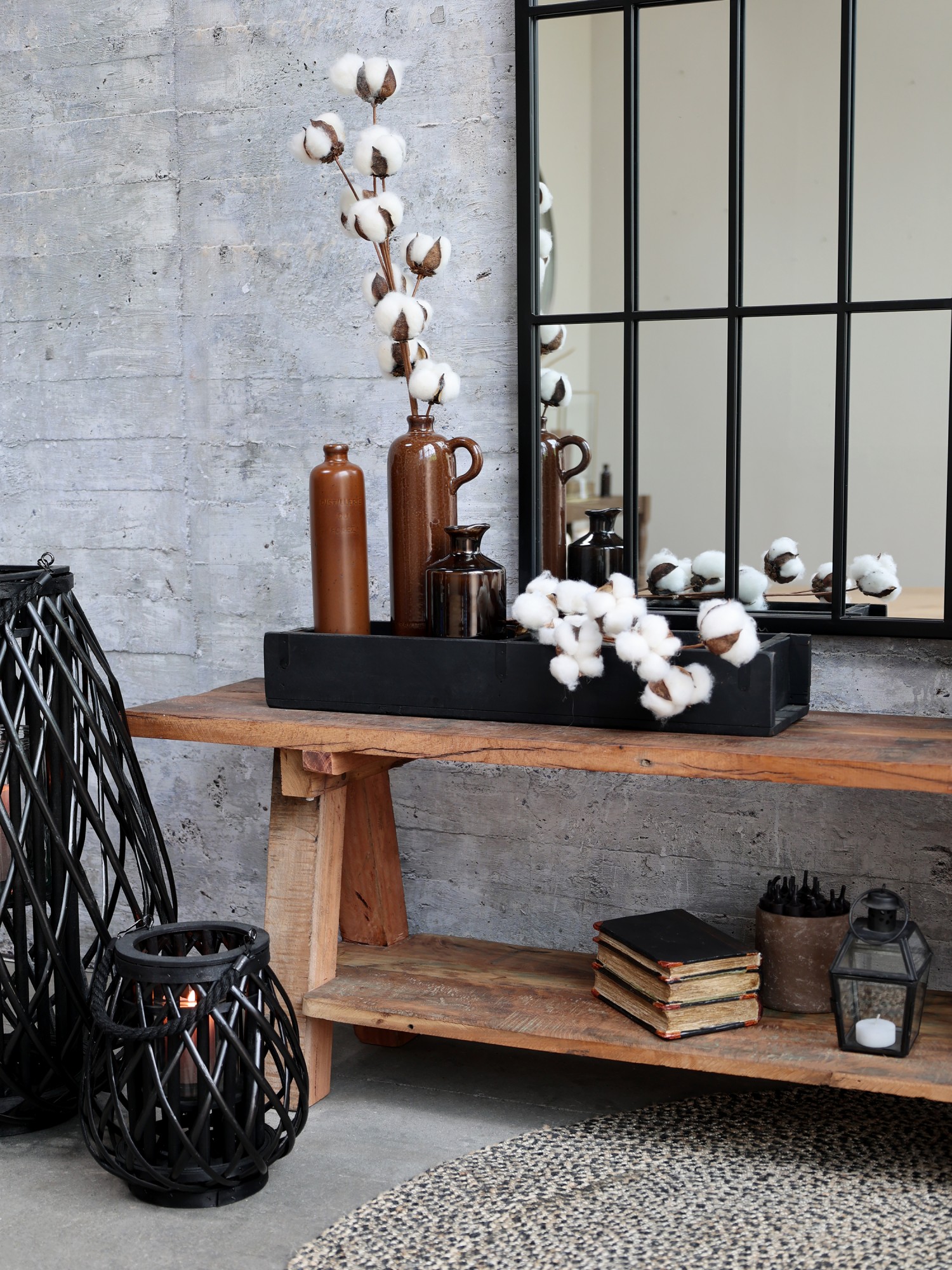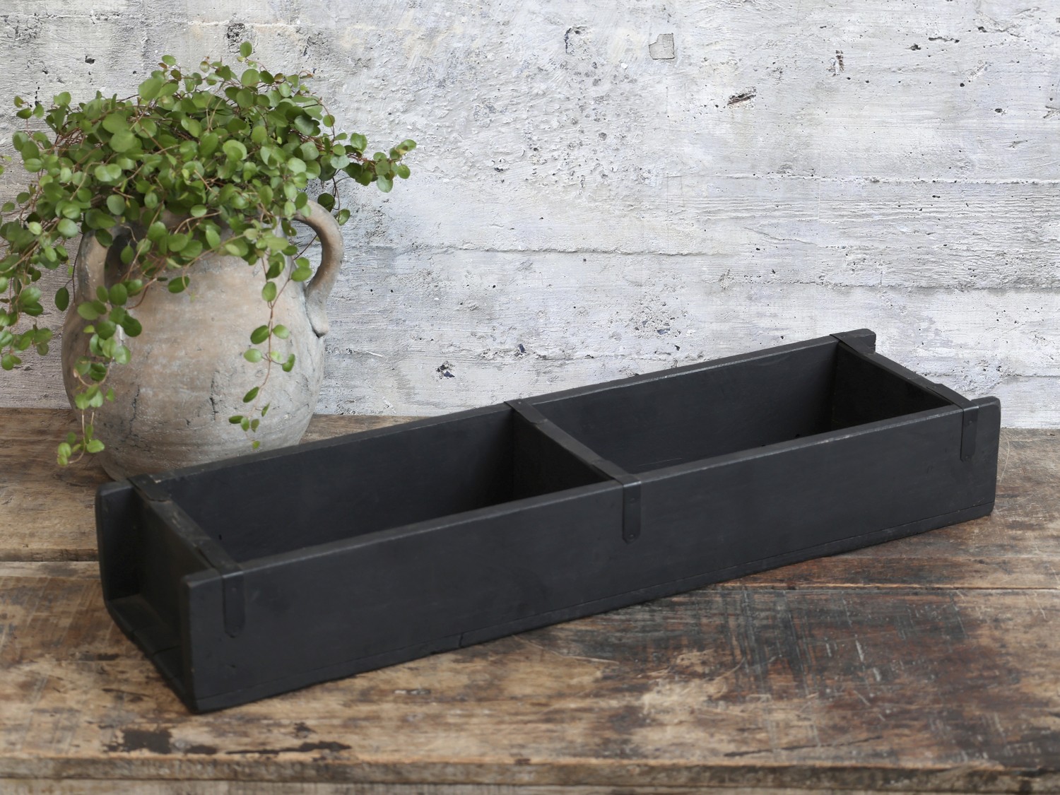 Dobbelt sort murstensform fra Chic Antique er et unika. Denne her træform er dobbelt så lang som de andre murstensforme vi også forhandler. I denne her er der blevet lavet to mursten af gangen. Træformen er et unika og er blevet brugt i Indien til at lave håndstrøgne mursten af. Leret klaskes ned i formen som rystes og klappes med hænderne, dernæst vendes murstenen ud og soltørres. Brug formen fra Ib Laursen som dekoration eller pynt. Lav en dekoration i formen, med mos, lys og kugler til jul. Resten af året kan du bruge årstidens farver og pynt fra naturen. Alle de dobbelte træforme er unikke og ikke to er ens i udseendet, da de er gamle og brugte træforme med metalbeslag. Slid, afslag og splinter vil forekomme i alle træforme fra Indien.