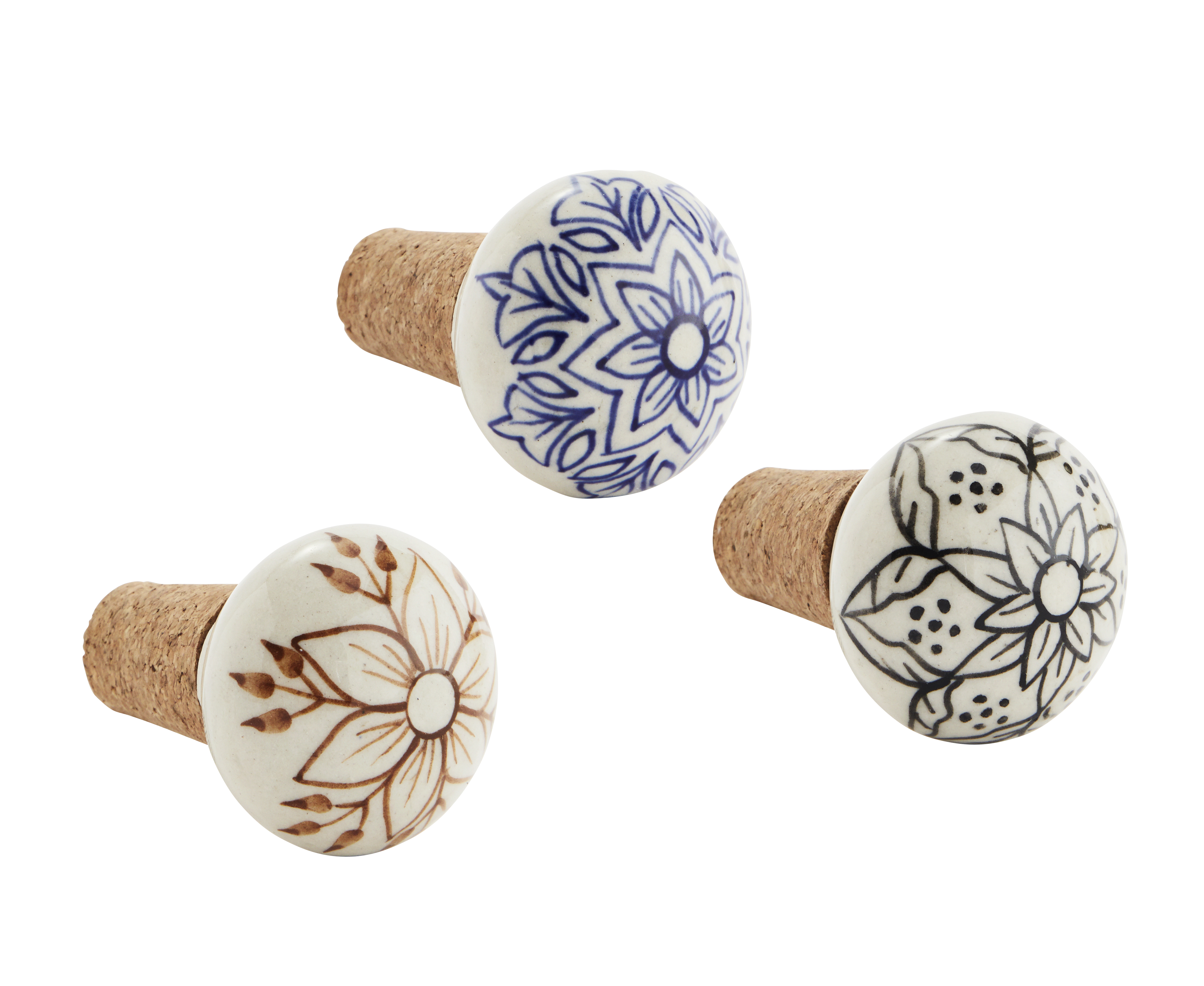 Rigtig sød flaskeprop fra Madam Stoltz. Flaskeproppen i procelæn har et flot håndmalet mønster på toppen, og korkproppen sørger for at flasken er lukket. Sælges enkeltvis, skrive gerne om du ønsker brun, blå eller sort i kommentar. Bemærk: Blå knop er udsolgt. 1 stk. tilbage i brun og 1 stk. tilbage i sort.