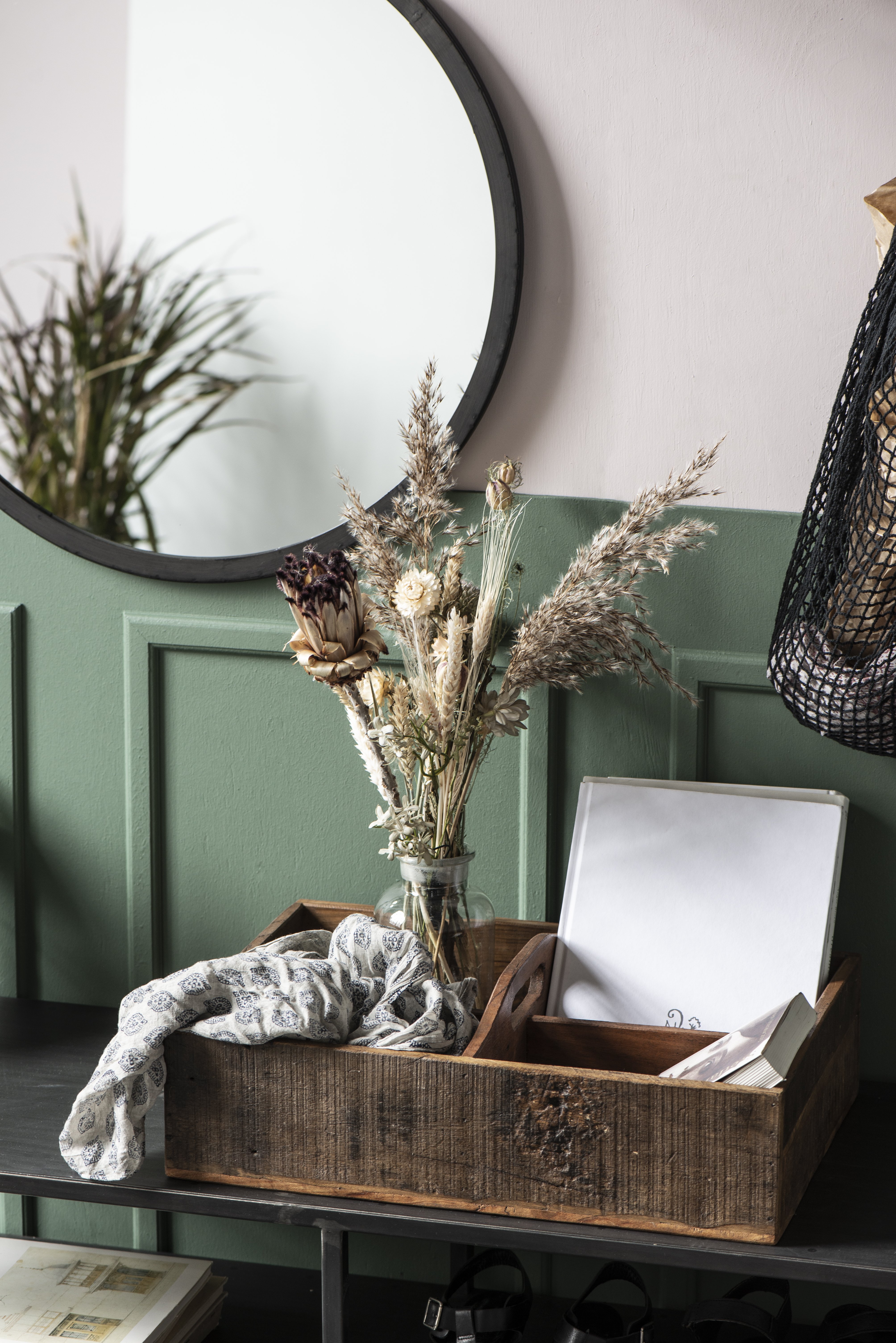 Utrolig flot træ kasse med 4 rum, og hank på tværs fra Ib Laursen. Denne træ kasse er meget anvendelig, og kan bruges overalt i hjemmet til eksempelvis opbevaring af stearinlys, servietter, krydderier eller måske olie og edike flasker. Træ kassen ville også være super flot på terrassen eller i havestuen, lige netop der hvor du kan bruge den til opbevaring, af alt lige fra dit strikketøj til dine have redskaber. Der er mange muligheder med denne træ kasse fra Ib Laursen. Kassen er lavet af indisk genbrugstræ, som stammer fra nedbrydnings materialer. Der kan forekomme knaster, revner, sprækker og splinter i træet og træsorten kan variere, dette er en del af charmen ved Unika, alt er ikke ens, men unik....