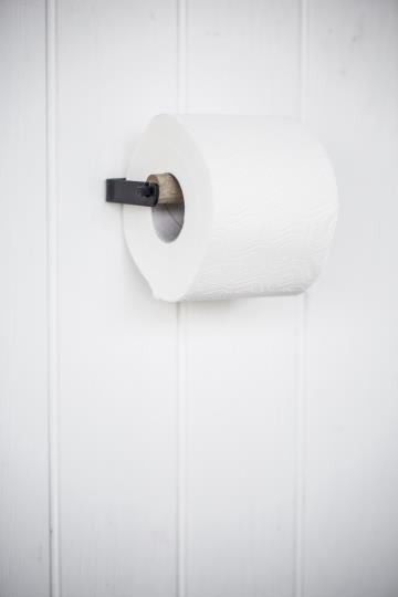 En rigtig fin toiletpapirholder i sort jern og med trærulle, fra Ib Laursen. En rigtig fin og helt enkelt toiletpapirholder som er utrolig populær fra Ib Laursen. Den passer perfekt ind i den minimalistiske og lide rustikke indretning. Uanset om det er badeværelset i dit hjem eller i dit sommerhus, så kan denne toiletpapirholder nemt monteres på væggen. Toiletrullen kan nemt skiftes ved at løfte trærullen op at holderen og sætte den på plads igen, ukompliceret og hurtigt.Toiletpapirholderen forhandler vi også i hvid her hos Butik-Lundager.