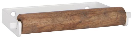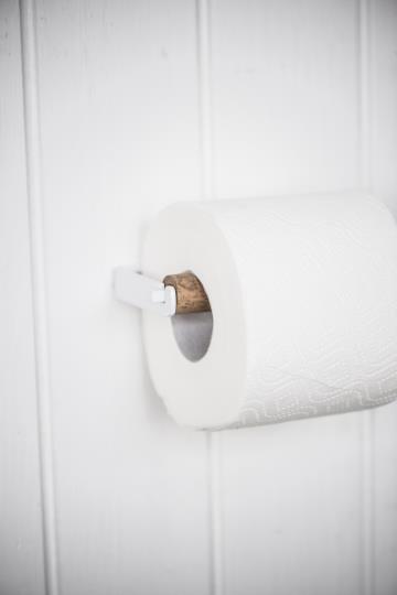 En rigtig fin toiletpapirholder i farven hvid og med trærulle, fra Ib Laursen. En rigtig fin og helt enkelt toiletpapirholder som er utrolig populær fra Ib Laursen. Den passer perfekt ind i den minimalistiske og lide rustikke indretning. Uanset om det er badeværelset i dit hjem eller i dit sommerhus, så kan denne toiletpapirholder nemt monteres på væggen. Toiletrullen kan nemt skiftes ved at løfte trærullen op at holderen og sætte den på plads igen, ukompliceret og hurtigt. Toiletpapirholderen forhandler vi også i sort og messing her hos Butik-Lundager.