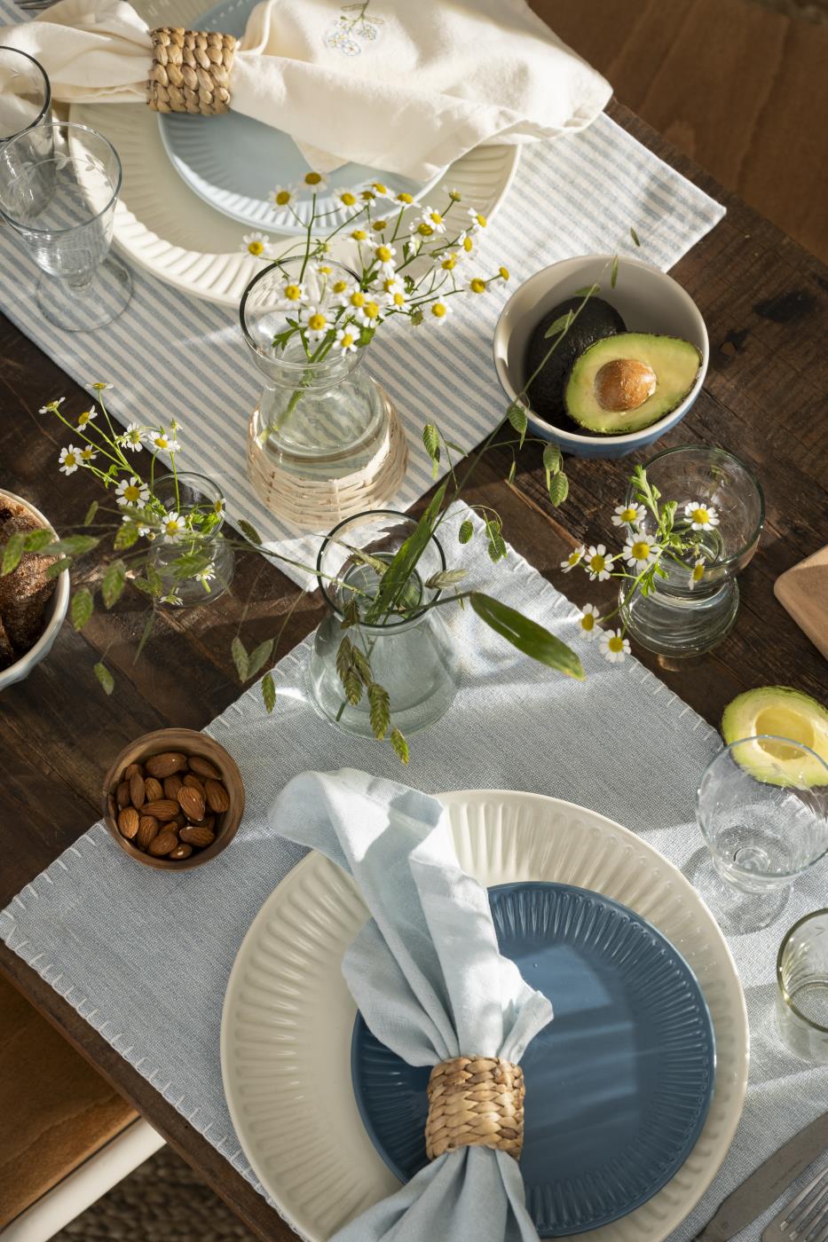 Rigtig fin dækkeserviet fra Ib Laursen, i farven støvblå. Smart serviet med hvide striber. Dæk op med den støvblå farvede dækkeserviet fra Ib Laursen, det giver lidt kant til en ellers elegant borddækning. Der er masser af plads til både tallerkener og glas på den runde dækkeserviet fra Ib Laursen. Dækkeservietten kunne også være flot på køkkenbordet til at samle krydderier, olier og vitaminer på, sæt gerne en krukke med dine køkkenværktøjer sammen med. Eller brug den i stuen som en lille "bakke" hvor du kan stille en vase med afskårne blomster, et par lys og måske en lille pynteting som passer i farven. Så har du en flot og enkelt dekoration til stuebordet.