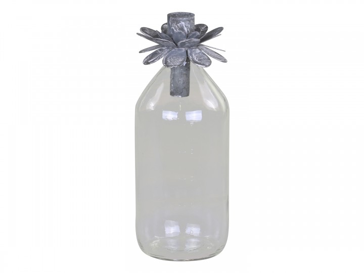 Den store glasflaske fra Chic Antique, er super sød og deokrativ med sin flotte lysholder. Til glasflaske medfølger en flot lysholder som er formet som en smuk blomst. Du kan også vælge at bruge flaske uden lysholderen og i stedet bruge den som en vase, og pynte den med en lille blomst fra haven. Det er så sødt at have en lille "oase" stående i et vindue eller på en bakke på stuebordet, hvor du kan pynte med forskellige lysestager, vaser og måske en grøn plante. Pynt dit køkkenvindue med disse fine flasker som findes i tre forskellige størrelser. Det er også muligt af anvende kertelys til denne flaske. Her ser du flasken i en stor størrelse, som kan indeholder 500 ml. Se de øvrige størrelse på Glasflasker med lysholder her på siden.