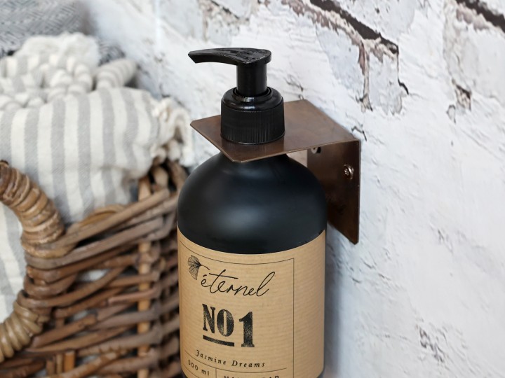 Et praktisk vægophæng til din sæbedispenser fra Chic Antique. Det ser utrolig flot og stilfult ud hvis du har din sæbedispenser hængende på væggen, i stedet for at den står på dit bord. Dette vægophæng er lavet i farven sort og passer til vores Sæbedispenser i glas fra Chic Antique, som findes i faven kul eller mocca, samt i en 480 ml. eller 1000 ml. Du kan bruge sæbedispenser og vægophæng i dit badeværelse, i køkkenet til opvaskemiddel eller håndsprit, eller måske i entreen til håndsprit som dine gæster nemt kan se, og bruge når de besøger dig. Hul til flaskhoved måler 2,8 cm.