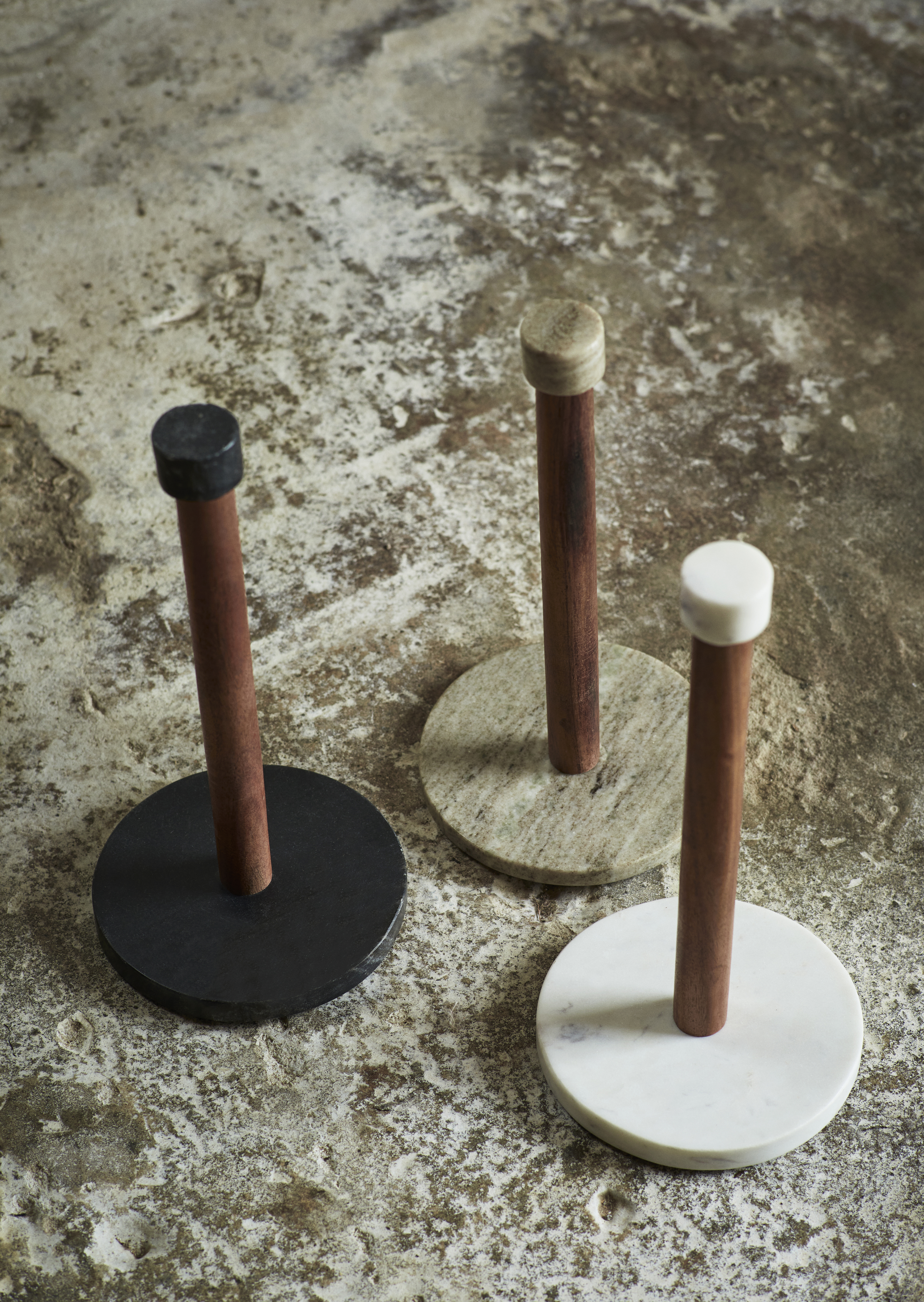 Madam Stoltz Køkkenrulleholder, Sort Marmor og Natur