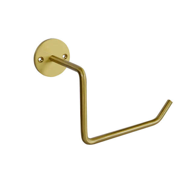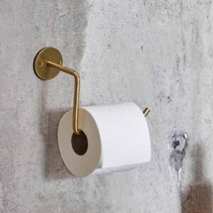 Denne stilfulde Wall toiletrulleholderen i børstet messing er fra Moud Home. Holderen vil være en smuk gylden tilføjelse til din badeværelsesindretning. Den er udført i et elegant og enkelt design, der passer perfekt sammen med fx. WALL håndklædeholderen og generelt alle vores knager i børstet messing. Messing på badeværelset er med til at give rummet et mere varmt og elegant udtryk. Wall toiletrulleholderen er udført i massiv messing, og ruster derfor ikke på badeværelset. Her får du en kvalitet, som holder sig flot og du kan nyde det smukke design i mange år. Den er nem at hænge op ved hjælpe af de medfølgende skruer og rawplugs.