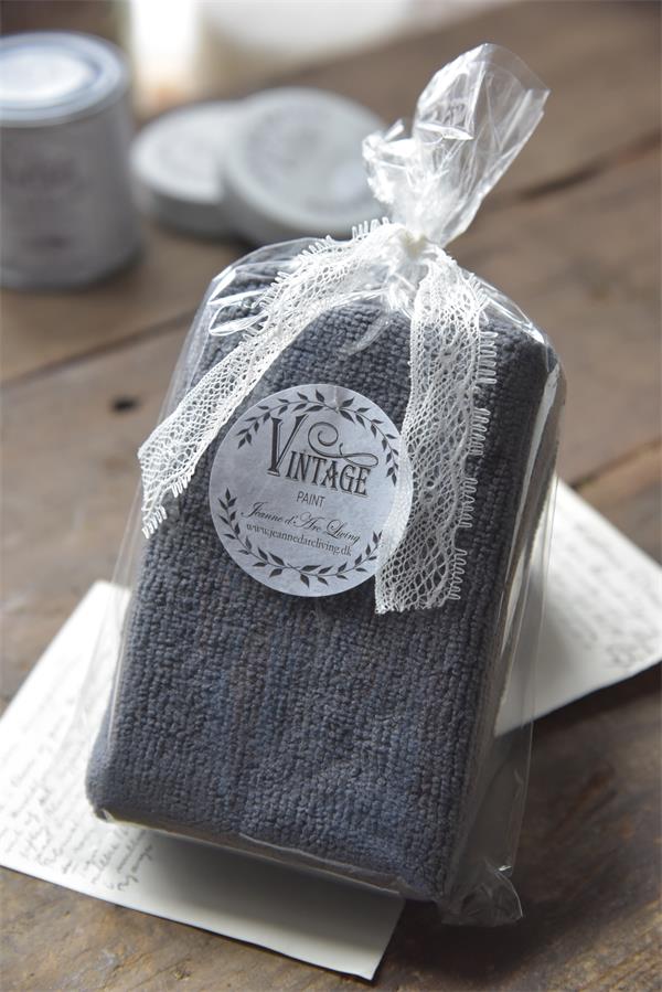 Denne fine svamp med mikrofiber, er fra Vintage Paint. Denne svamp er virkelig god at patinere malede overflader med, inden overfladen/malingen er helt tør. Ligeledes kan du bruge den til at påfører voks på dit  projekt som du har malet med kalkmaling. Svampen kan anvendes i både tør og våd tilstand, og skylles let op i vand så denne kan genbruges.