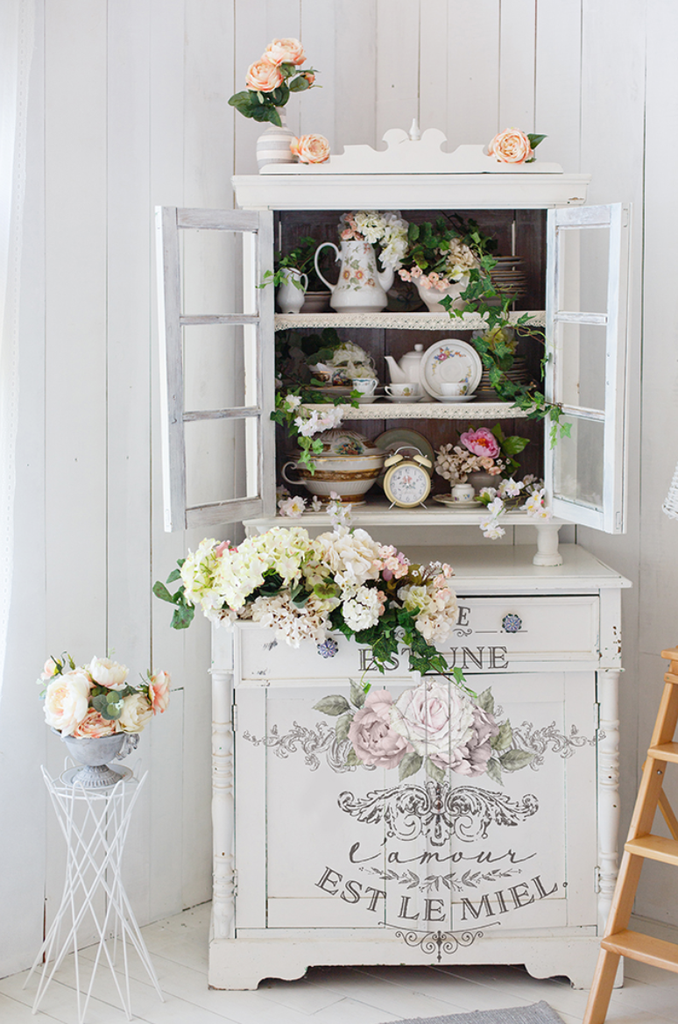 Som noget helt nyt har vi fra Vintage Paint de smukke transfers fra Redesign. Det er helt utrolig hvordan du nemt kan forvandle dine møbler til noget helt unik, som du ikke ser andre steder, og vil vække opsigt hos dine gæster. Du kan dekorerer et hvilket som helst møbel, som du syntes skal friskes op - alt ligefra din gamle kommode, bordet, din taburet, en serveringbakke, eller en kedelig skabslåg i soveværelse. Når du har malet dit møbel med kalkmalingen, kan du bruge denne fine transfer med roser og flot skrift for at få et unikt møbel. Placer din transfer midlertidig for at se din endelige placering på dit projekt. Herefter kan du fjerne bagsiden og lægge transferen på dit projekt, påfør eventuel malertape i hvert hjørne for at fastholde placeringen. Nu kan din transfer overføres med en isskraber eller en anden genstand som du kan skrabe med. Bemærk: dette kan være en bestillingsvarer, og et par ekstra leveringsdage må påregnes.