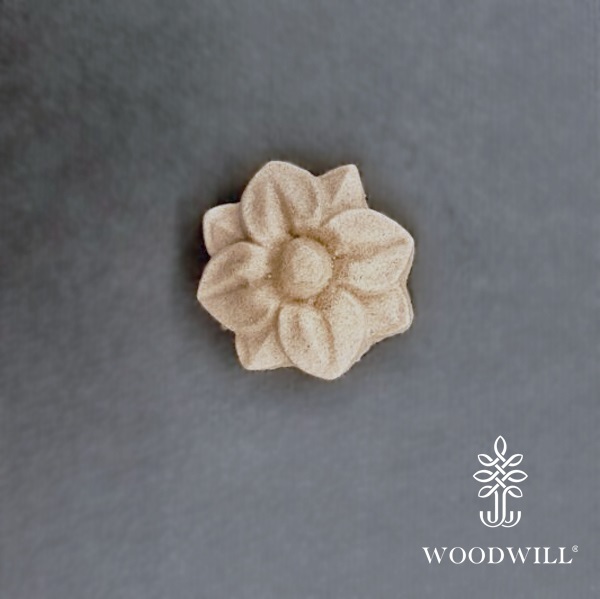 Sød lille træudskæringer fra Woodwill med navnet Flower Rosette, fremstillet i presset træ. Mangler du lige lidt ekstra effekter til dine møbler og dit hjem, så er et ornament et oplagt valg. Denne udskæring er god på hver side at et midterpunkt, for at give lidt ekstra effekt. Det kunne eksempelvis være på en skuffe, en låge, i hvert hjørne øverst på rammen af et spejl, i hvert hjørne på dørkarme eller måske en sengegavl. Du skaber let et nostalgisk udtryk på dit møbel og i hjemmet, og du kan ændre et møbel til den stil du ønsker. Du kan male og/eller patinere ornamentet, så det matcher dit møbel, eller hvor du vælger at sætte træudskæringen i din indretning. Kan males og patineres med Kalkmaling - træudskæringen giver et flot autentisk look i den franske landstil. Fås i forskellige størrelser og faconer, som du også kan finde her på vores webshop. Fremgangsmåden for dit arbejde med træ ornamentet eller træudskæringen finder du nederst på webshoppen under fanen Kalkmaling og træornamenter.