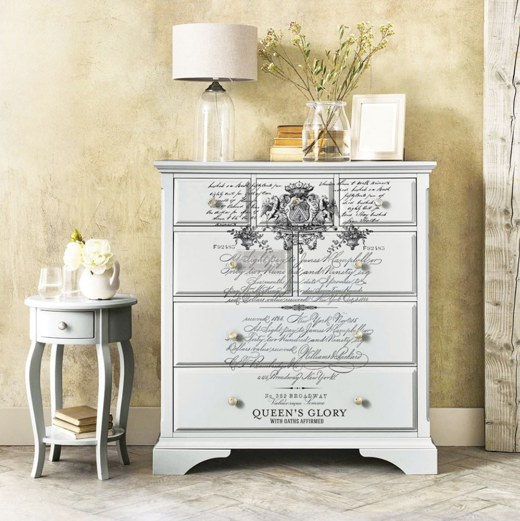 Det er en helt ny verden som åbner sig, med de flotte transfers fra Redesign. Det er helt utrolig hvordan du nemt kan forvandle dine møbler til noget helt unik, som du ikke ser andre steder, og som vil vække opsigt hos dine gæster. Du kan dekorerer et hvilket som helst møbel, som du syntes skal friskes op - alt ligefra din gamle kommode, bordet, en kedelig skabslåg i soveværelse. Når du har malet dit møbel med kalkmalingen, kan du bruge denne fine transfer med billeder og tekst for at få et unikt møbel. Du kan klippe det billede eller tekst ud som du ønsker at bruge på dit projekt, helt som du syntes det ser pænest ud. Placer nu din transfer midlertidig med malertage for at se din placering på dit projekt. Herefter kan du fjerne folien og påfører transferen med den skraber som medfølger i pakken.
