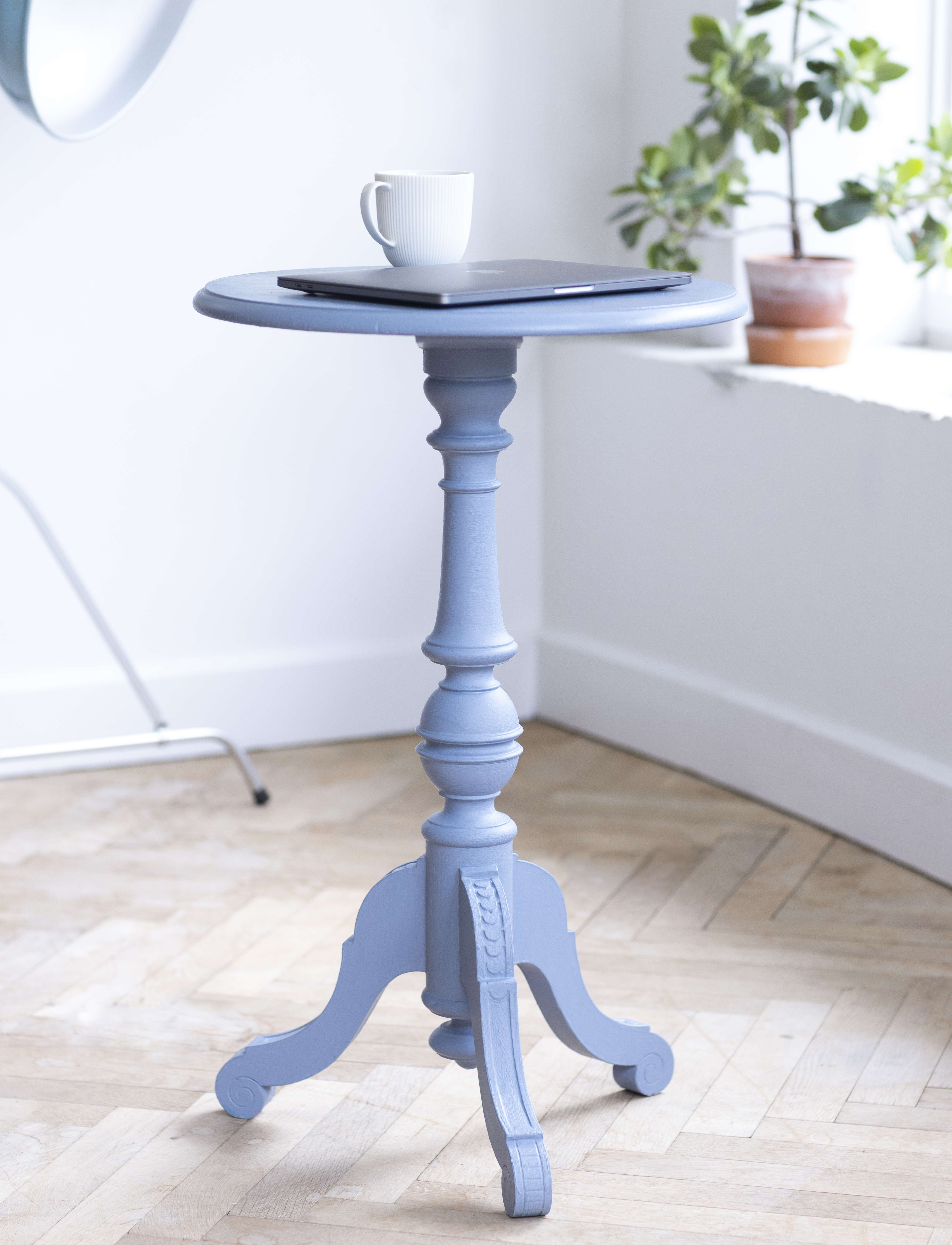 Vadehav, er en dejlig kølig blå farve. De malede pinde viser hvordan farven agere i forhold til vores forskellige voks og lak typer. Det smukke bord er malet med Vadehav og efterfølgende behandlet med Ultra Mat Lak, dette for at gøre overfladen lettere at vedligeholde og beskytte mod fugt og snavs. Vandbaseret miljøvenlig kalkmaling.
