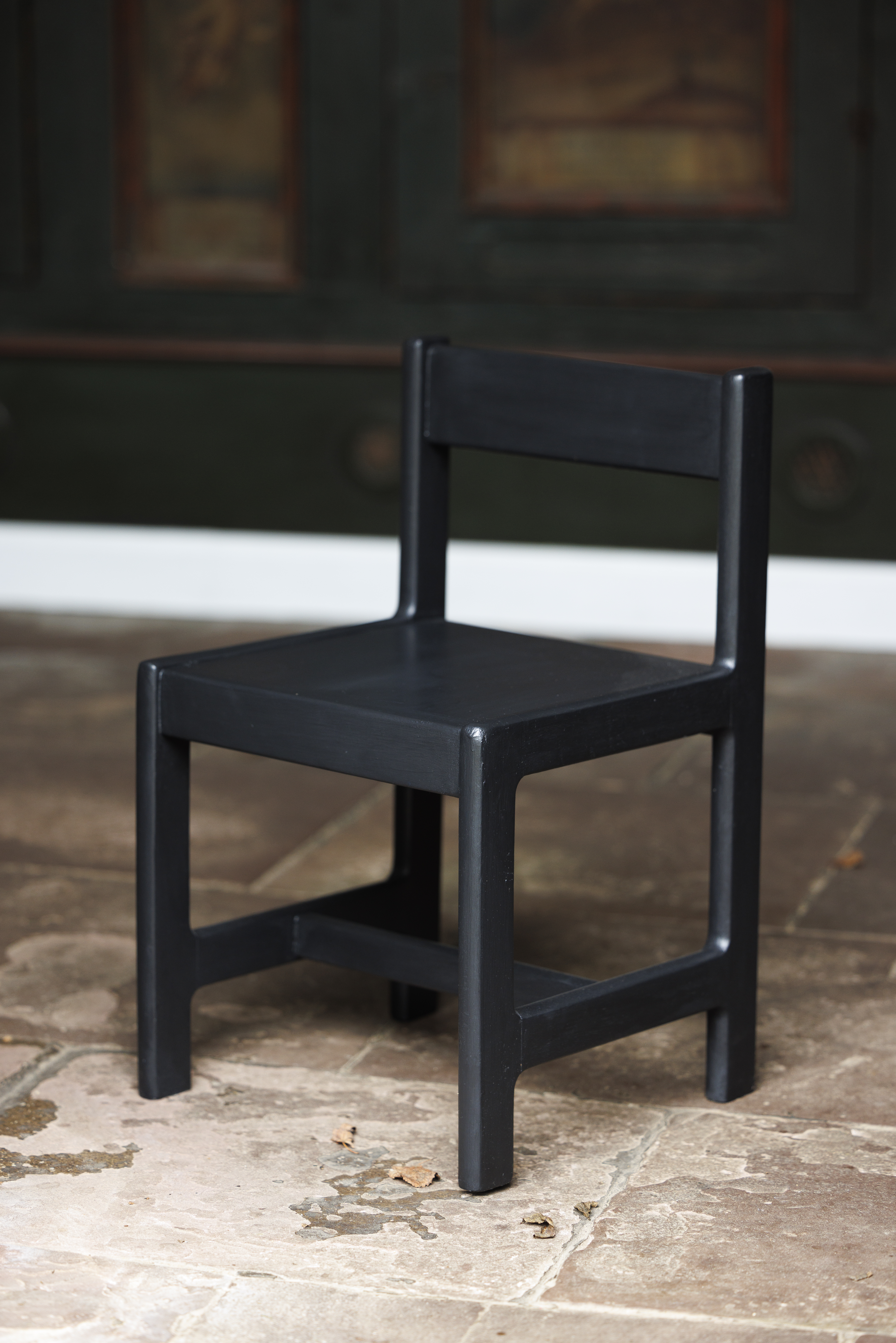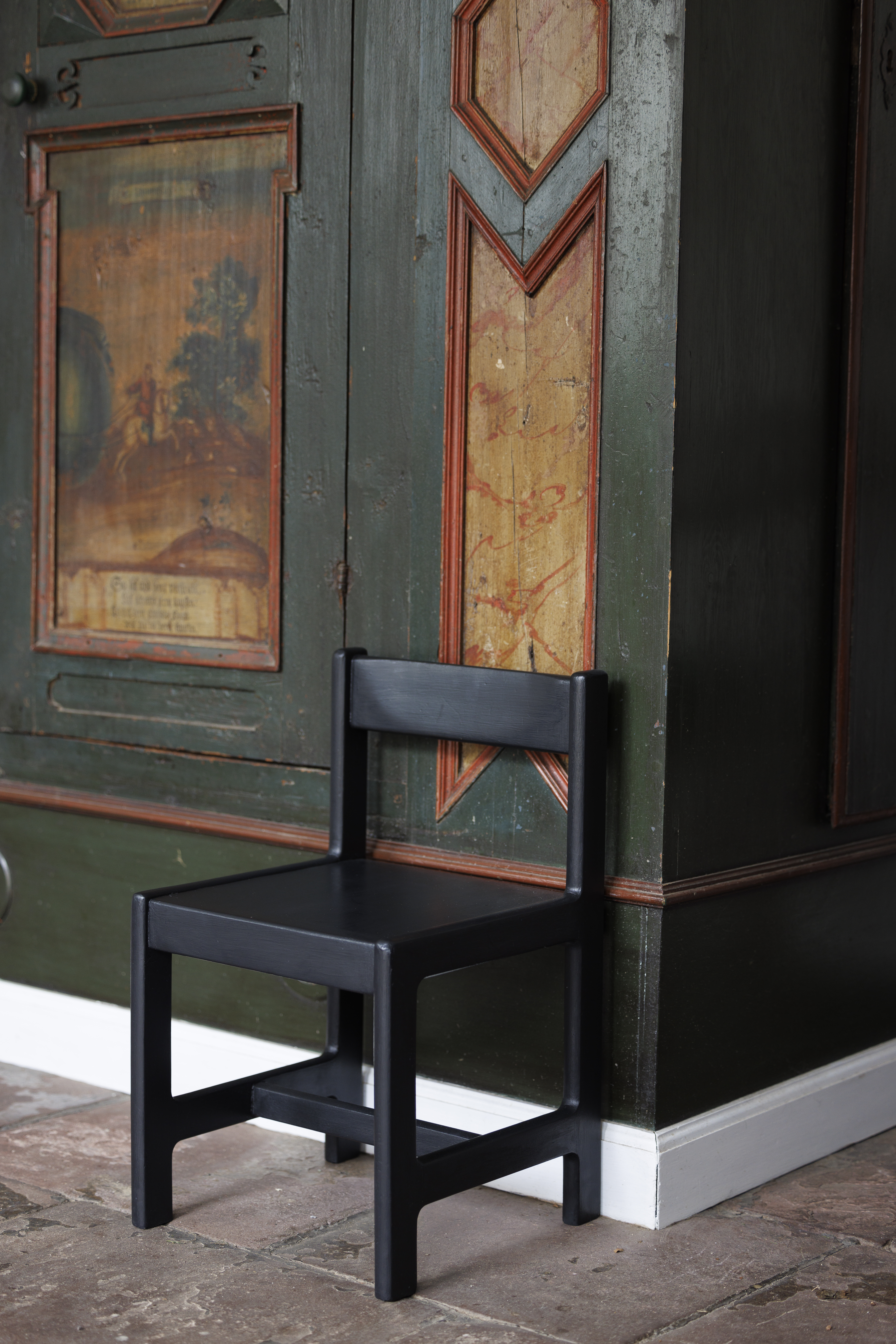 Barnestolen er malet med Sort Kul og efterfølgende har den fået