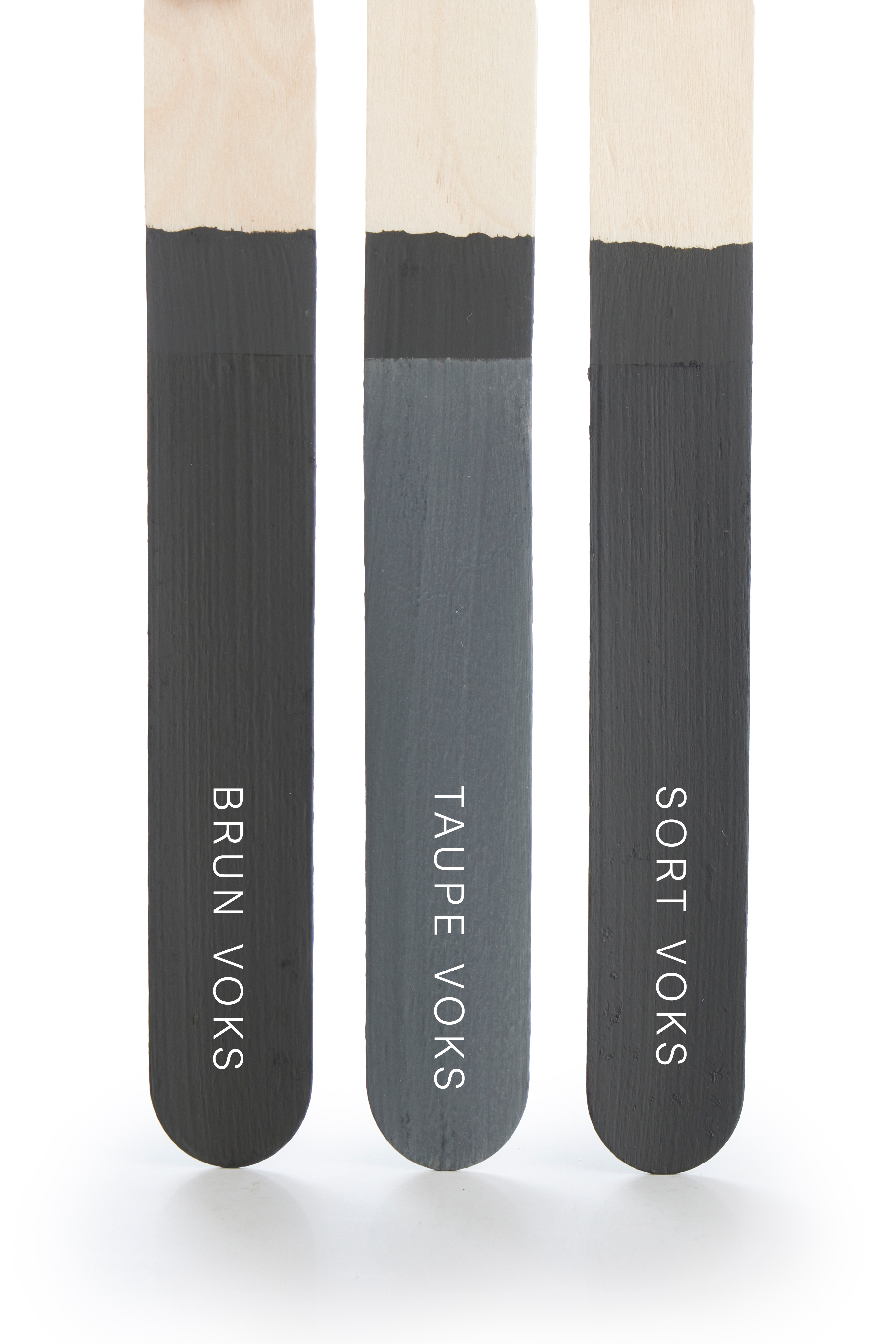 Farven Sort sol, er sort men ikke en kold kulsort farve. Sort Sol har gråbrune toner, men vil virke sort, hvis den ikke sættes sammen med en kulsort farve. De malede pinde indikerer hvordan farven agere i forhold til vores voks og lak. Vandbaseret miljøvenlig kalkmaling, som er utrolig let at arbejde med.